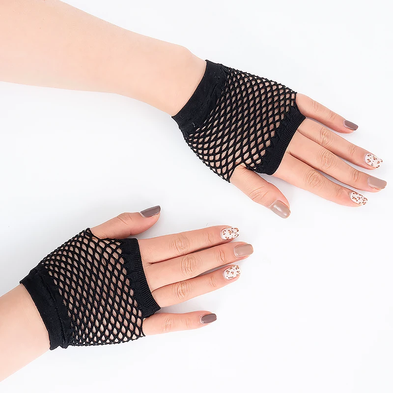Fashion Women Bride Wedding Party Lace Fingerless Mesh Sexy Fishnet Short Gloves