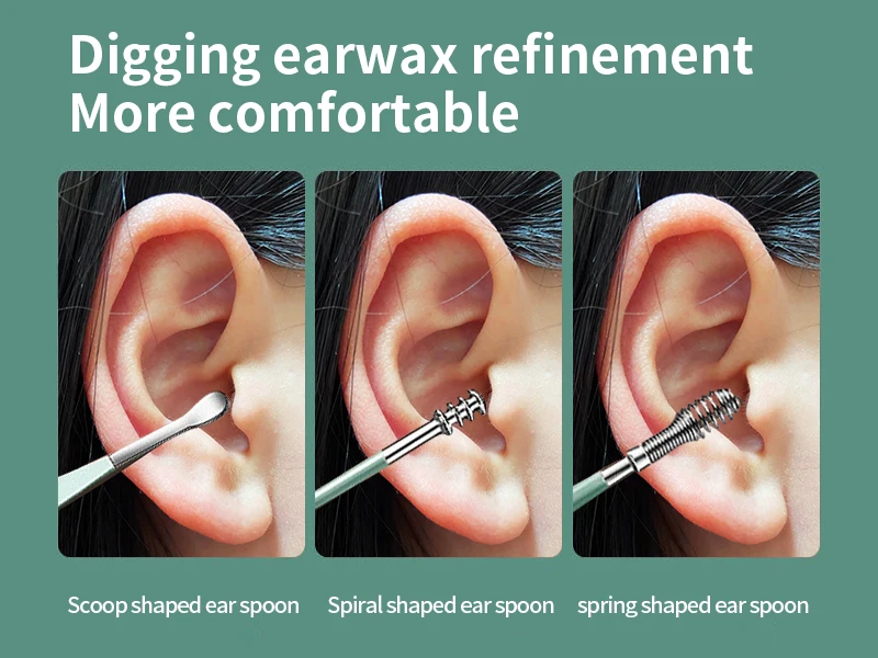 10/9Pcs/set Ear Wax Pickers Stainless Steel Earpick Wax Remover piercing kit earwax Curette Spoon Care Ear Clean Tool Easy Carry