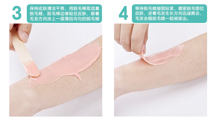 3. No depilatory paper are required, heating the wax and using the spatula apply the wax on skin directly, very convenient to use.