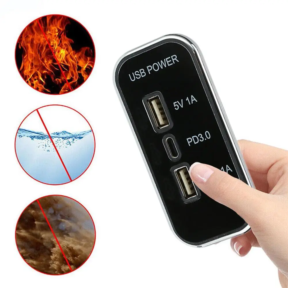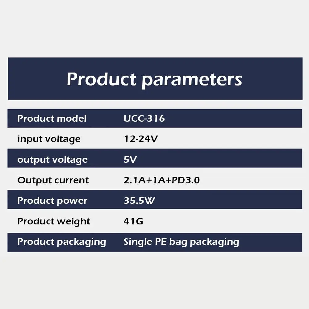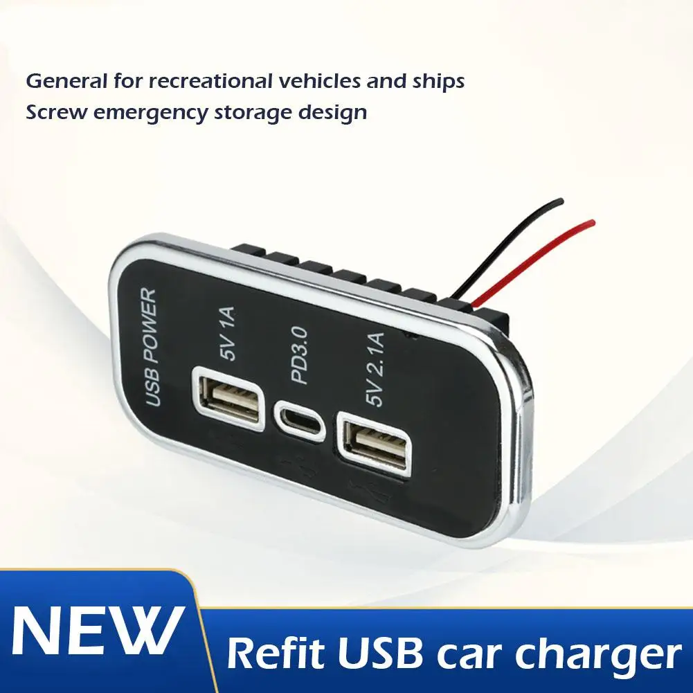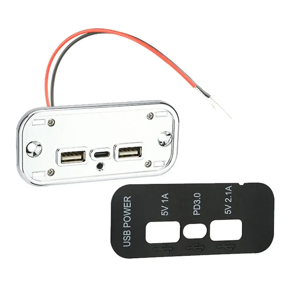 4.Simply installation It's surface mount installation. The device can be installed on a flat surface, with no need to cut a large hole, just a small hole to put the wire in, easy to be installed within 20 minutes. Universally suitable for most 12V/24V Vehicles, Cars, Motorcycles, Boats, RV. Input: 12V-24V,2.1A+1A+PD3.0