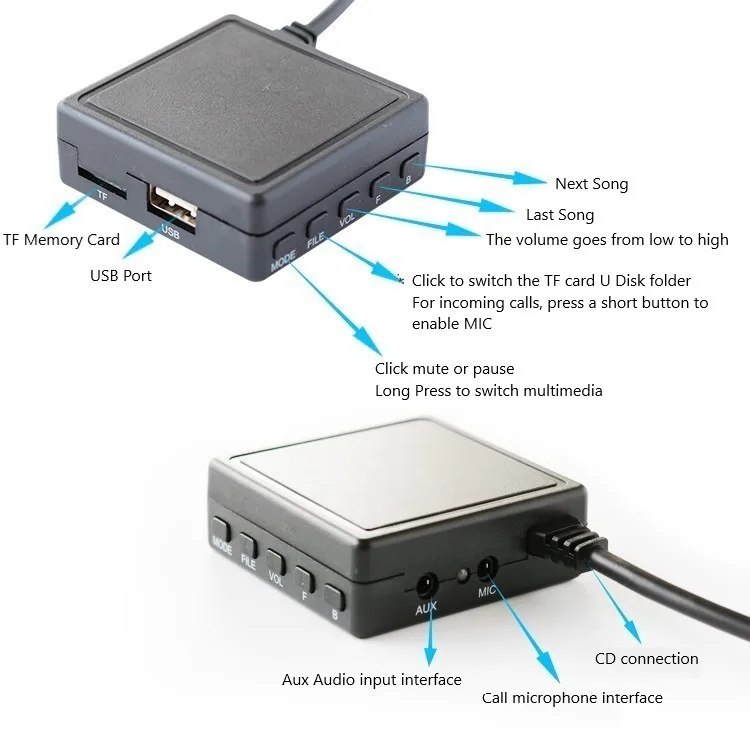 This style support AUX .USB .TF. Microphone handsfree .Bluetooth 5.0