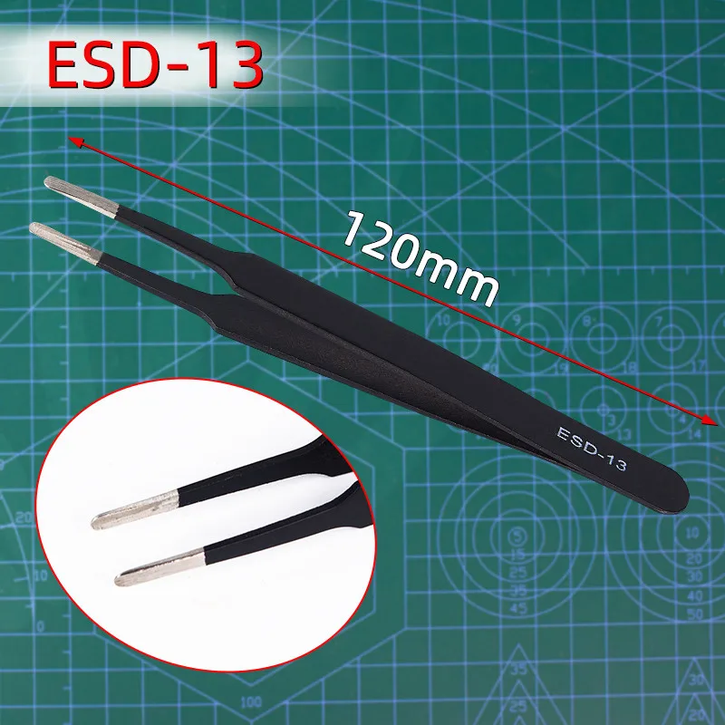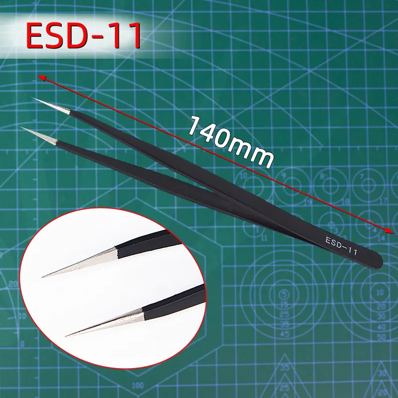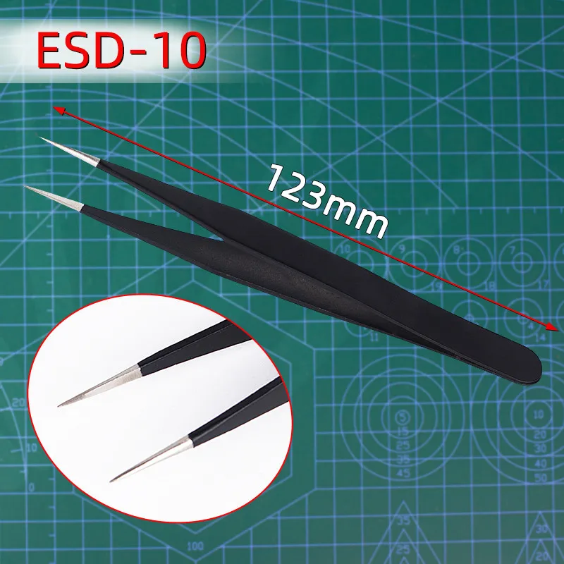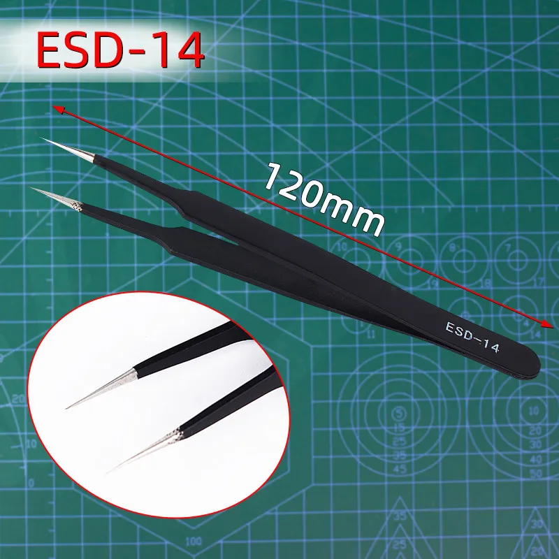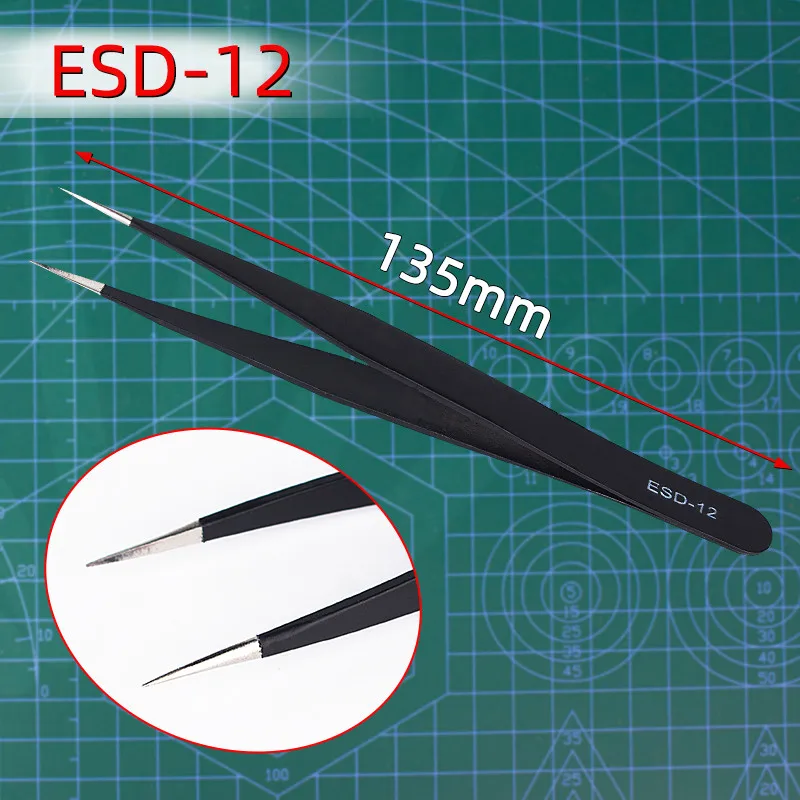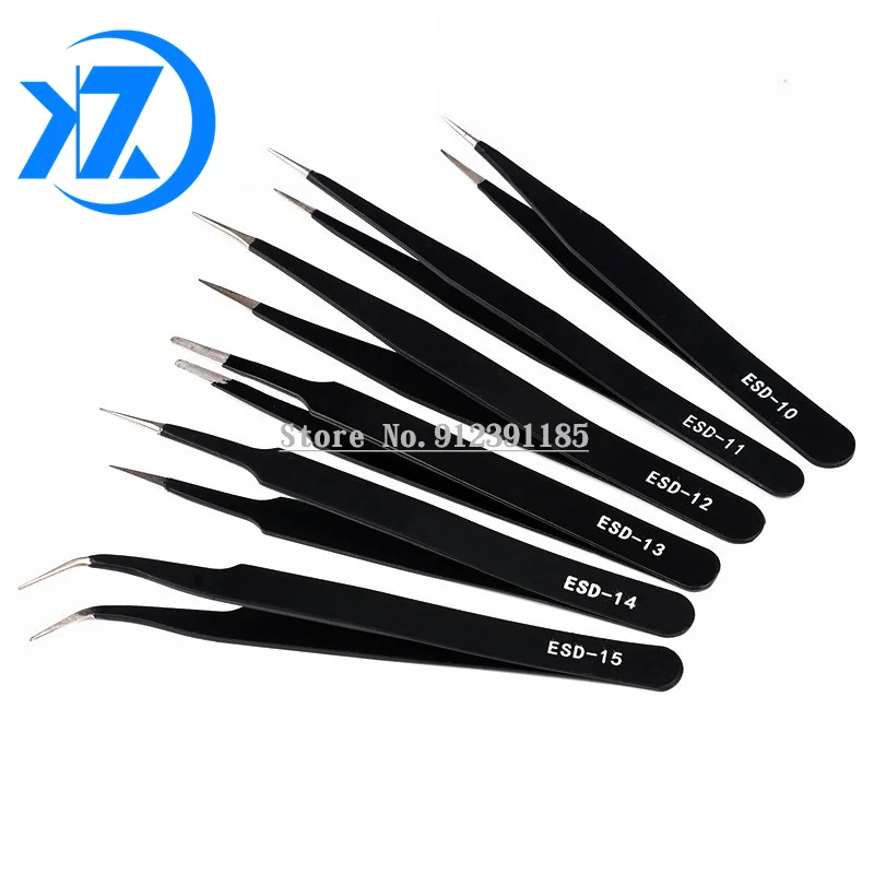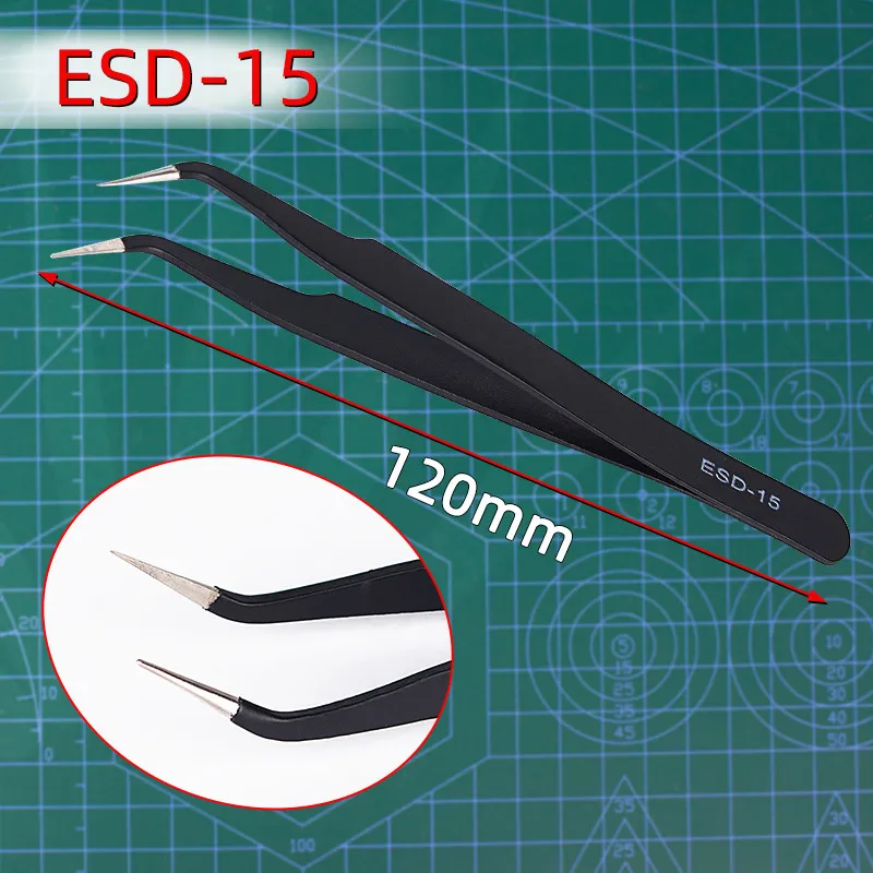 1Pcs ESD-10/11/12/13/14/15Anti-static Stainless Steel Tweezers Industrial Precision Curved Straight Tweezers Maintenance Tool