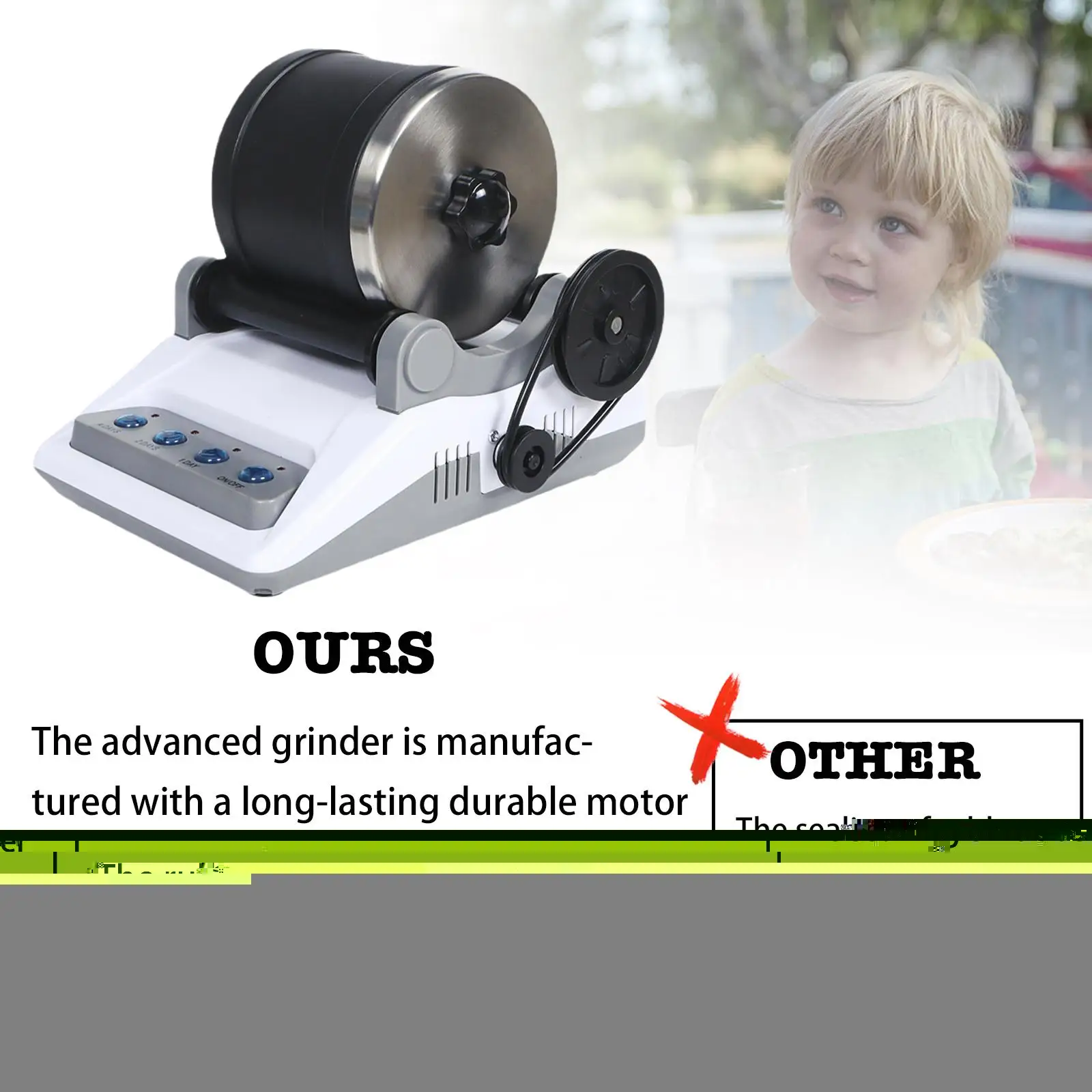 3. Our high-quality rock tumbler is made with high-quality electric motor, which can be used continuously and can work continuously for a long time. Also, the leak-proof rubber barrel with grinder has a good seal and is quieter than others