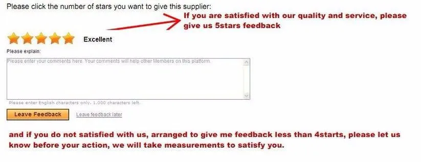 2. Please Contact us before leaving any negative or neutral feedback. Our customer service will reply you as soon as possible. Were here to help and we aim to resolve any questions within 24 hours. If you do not receive our reply in time, please kindly re-sent your email to us and we will reply to you as soon as possible. Thank you for your cooperation in advance.