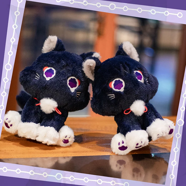 25cm Game Genshin Black Cat Fluffy Impact Wanderer Pet Plush Toys Scaramouche Cat Cosplay Doll Soft Stuffed Pillow Gift For Kids