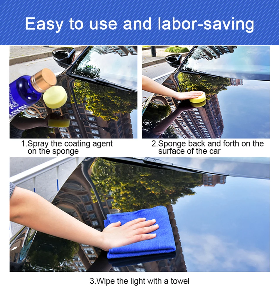 Product manual: Super hydrophobic glass coating, h9 hardness Can be used as a sacrificial barrier coating on the surface of car jackets to protect the car from aging, fading, weather and sun erosion, acid rain, industrial powder, etc., avoid car scratches, and make cars more shiny like new cars specification: Type: Automotive Liquid Ceramic Coating Material: Nanomaterials such as polysiloxane Hardness: 9H hardness Coating thickness: 30um Gloss: Excellent high gloss effect, similar to mirror gloss Anticorrosion: PH tolerance: PH2-12 Heat resistance: up to 760 degrees Consumption: 30ML x3 Bottle size: as shown how to use: 1. Wrap the cloth on a coated sponge 2. Sprinkle liquid on the sponge 3. Spread on the car with a sponge to indicate even application 3. Wipe and polish with a towel Package Included: 3 x automotive liquid ceramic coatings 3 x sponge 3 x towels without box