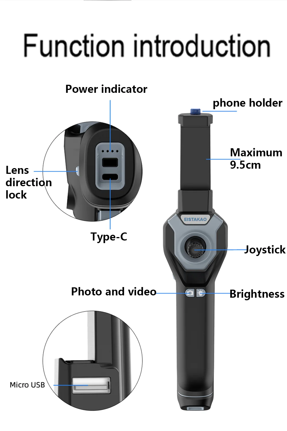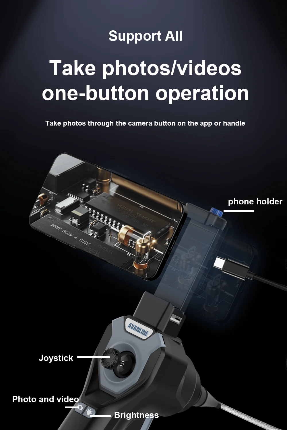 4-Way 360°Rotation Articulating Borescope,the complex space can be observed completely without dead angle.