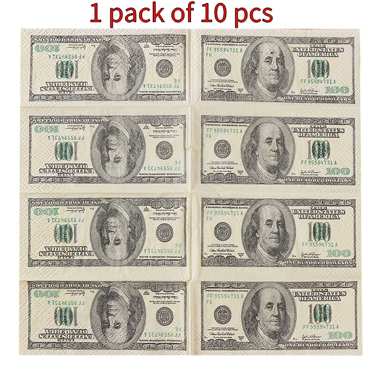 50/100Pcs 100$ Dollars Napkin Us Dollar Bill Money Paper Towel Party Funny Gift Disposable Napkins Wedding Party Decoration