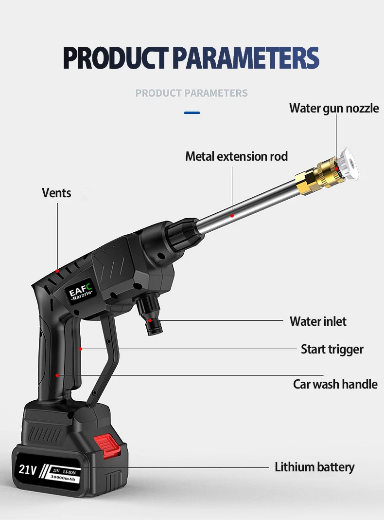 50Bar 21V Cordless High Pressure Car Wash Washer Gun 20000mAh  Car Wash Gun Electric Water Gun Machine