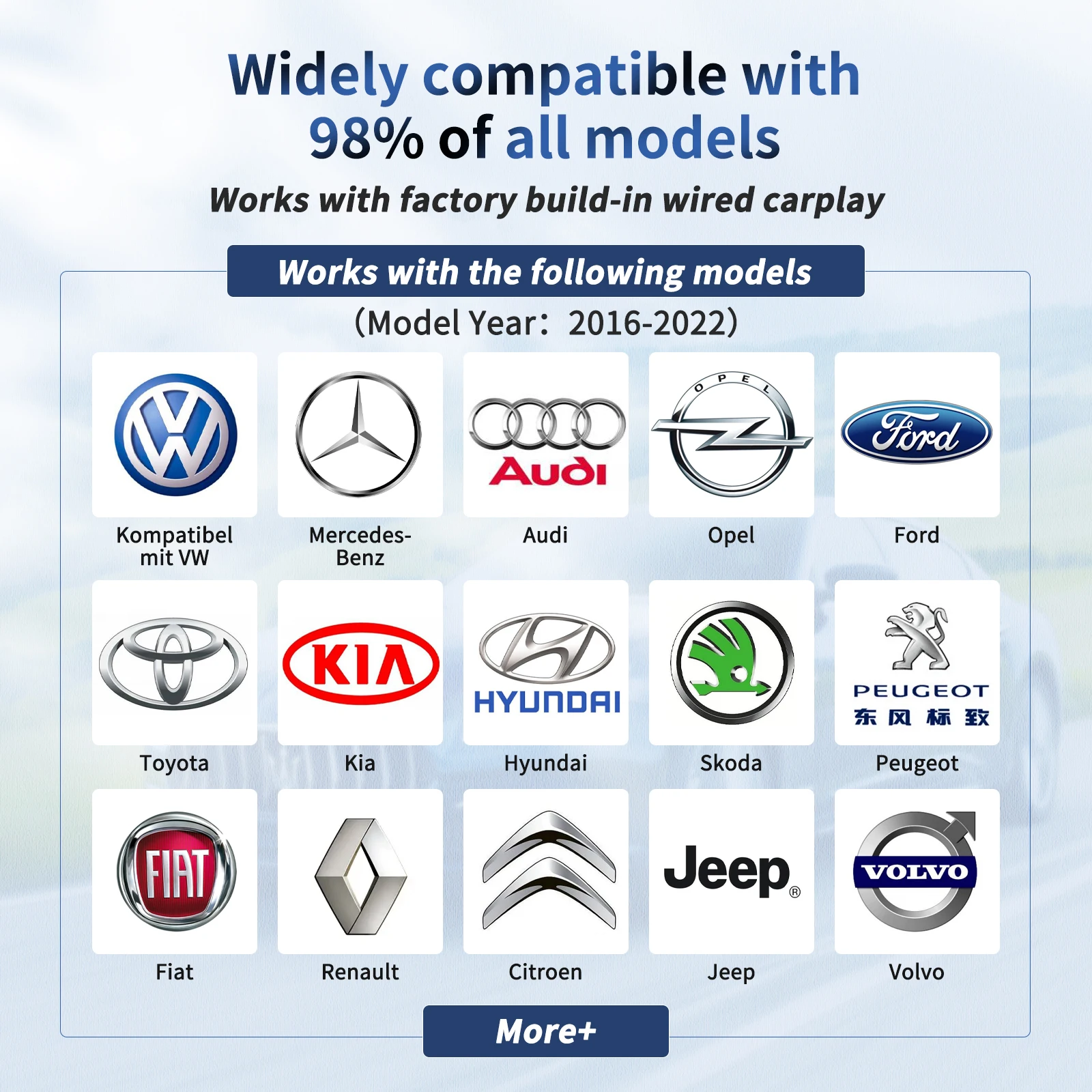 2. Compatible with over 98% of vehicles with factory-installed wired CarPlay