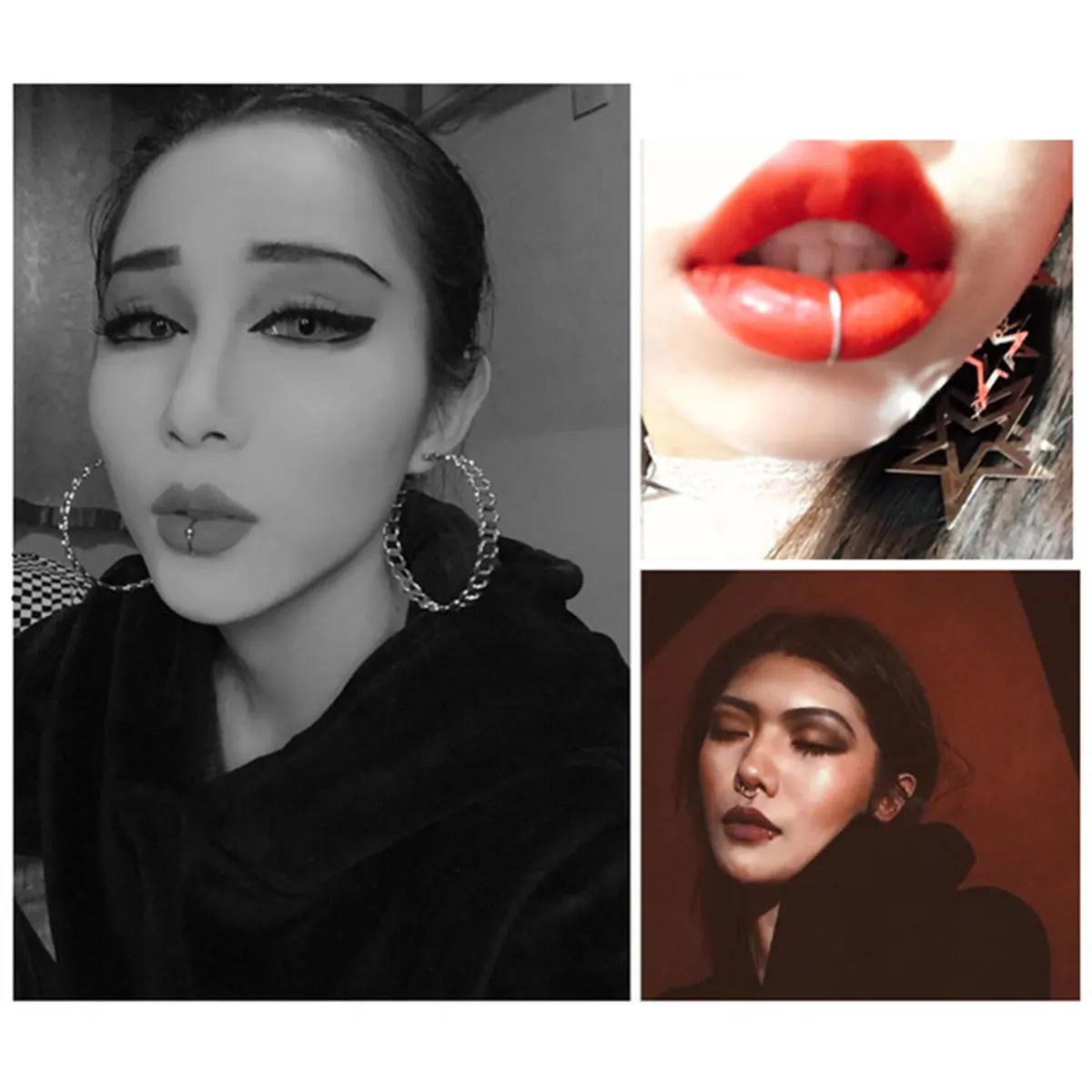 5Pcs Lip Nose Rings Neutral Punk Lip-shaped Ear Nose Clip Fake Diaphragm with Perforated Lip Hoop Body Jewelry Steel Ring