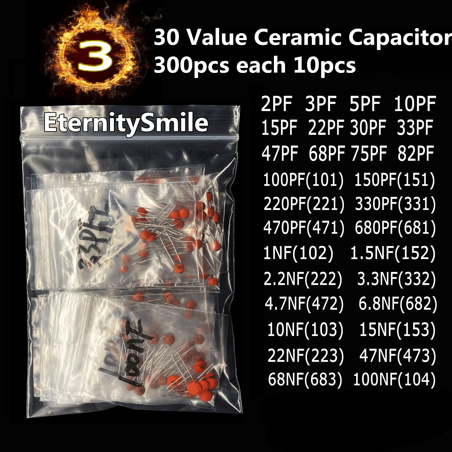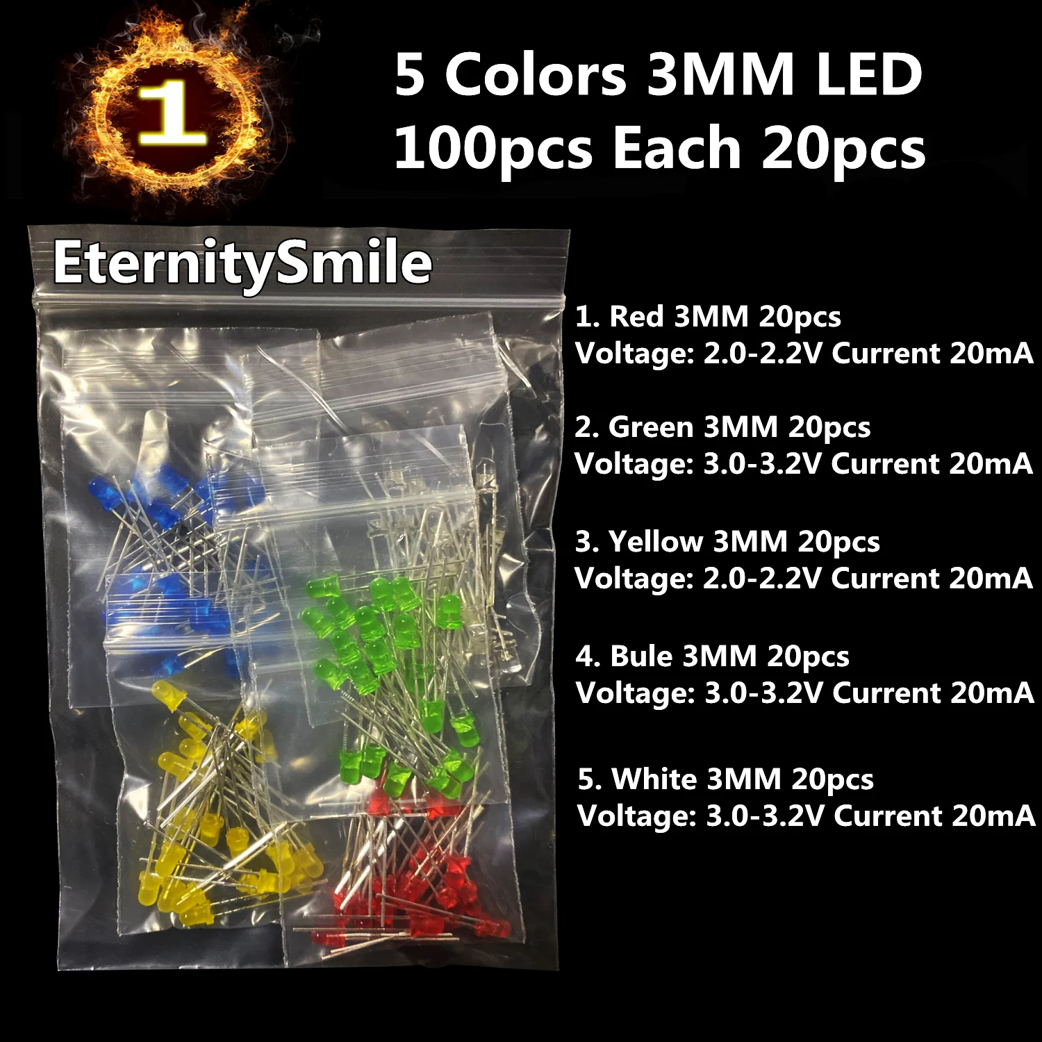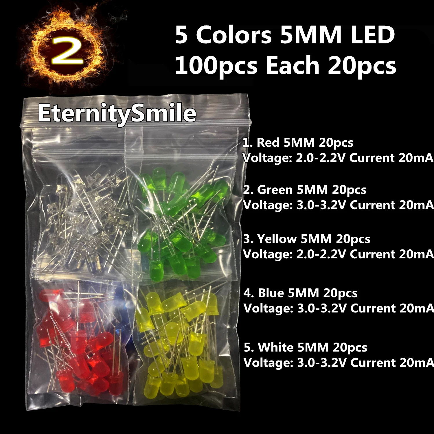 7 Value Components Big Kit 3/5MM LED Diodes and Triodes Ceramics Electrolytic Ceramics Capacitors Metal Film Resistors
