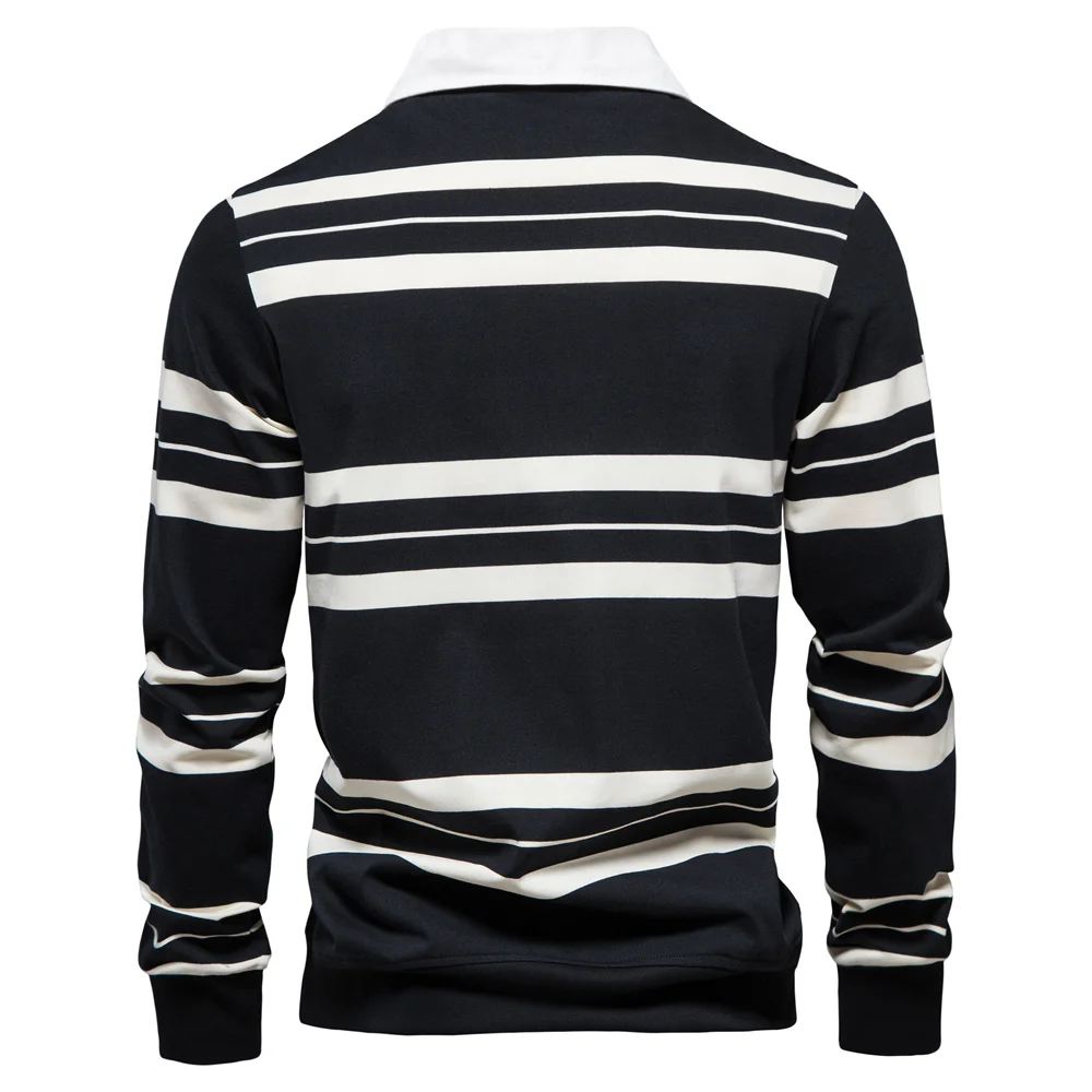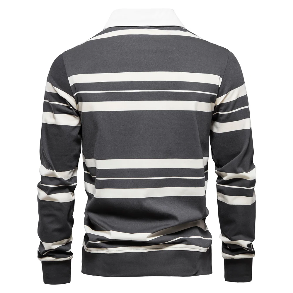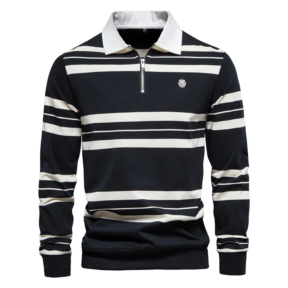 AIOPESON Embroidery Cotton Long Sleeve Polo Shirts for Men Striped Zipper Men's Polo Shirts New Spring Autumn Brand Men Clothing