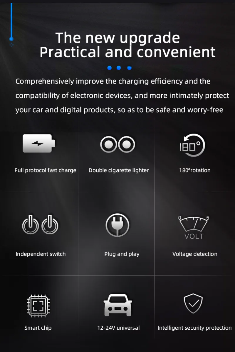 Comprehensively improve the charging efficiency and the compatibility of electronic devices, and more intimately protect your car and digital products, so as to be safe and worry-free