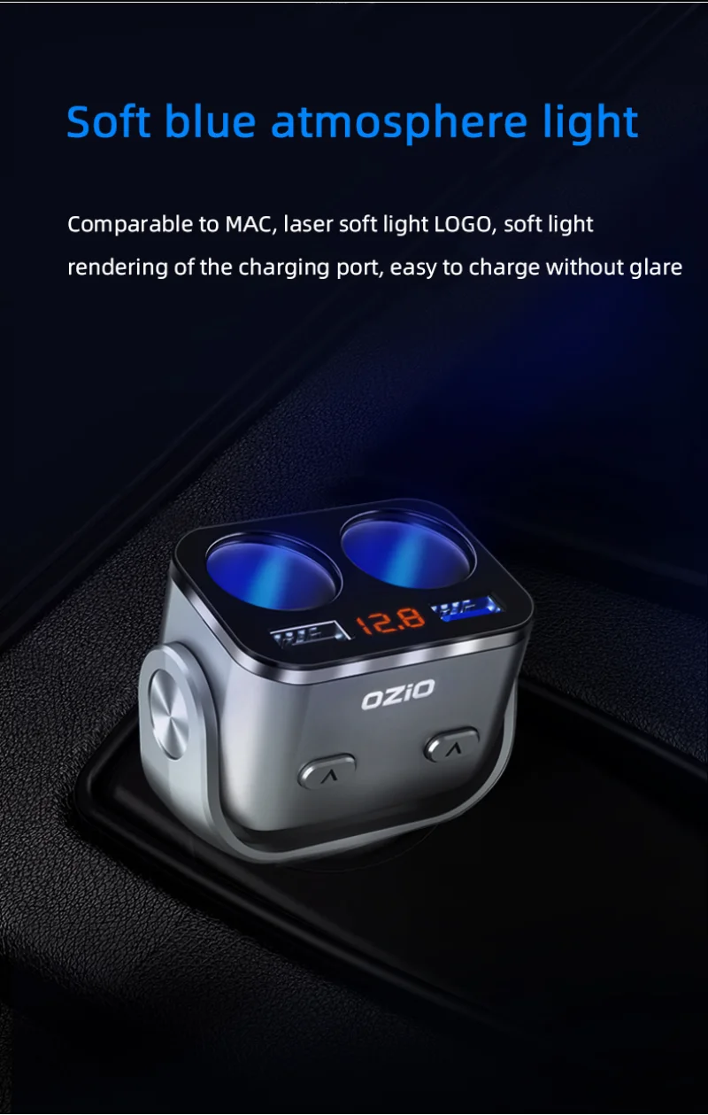 Intelligent digital display, voltage detection Compatible with driving recorder, electronic dog, heating cushion and other vehicle terminal equipment power supply, dual-hole expansion can support two cigarette lighter devices at the same time