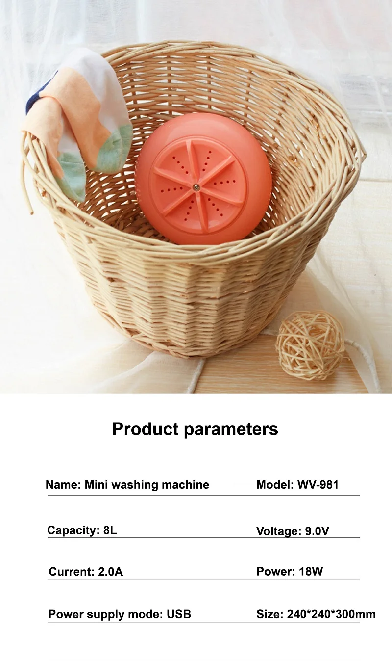 Baby Washing Machine Turbo Washing Machine Home Portable Underwear Panties Cleaner Table Bucket Washing Machine USB Charging 8L