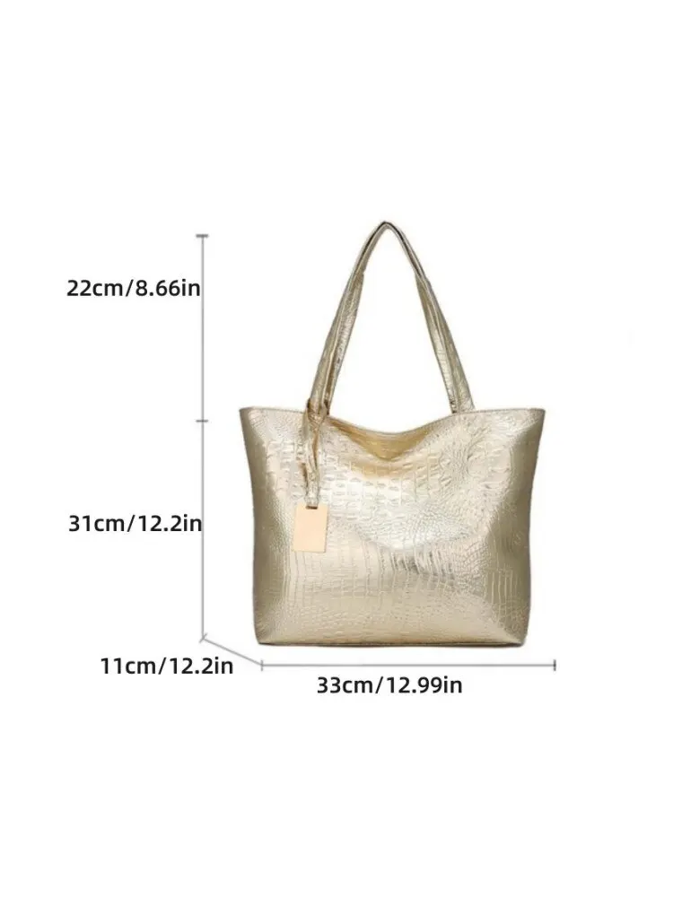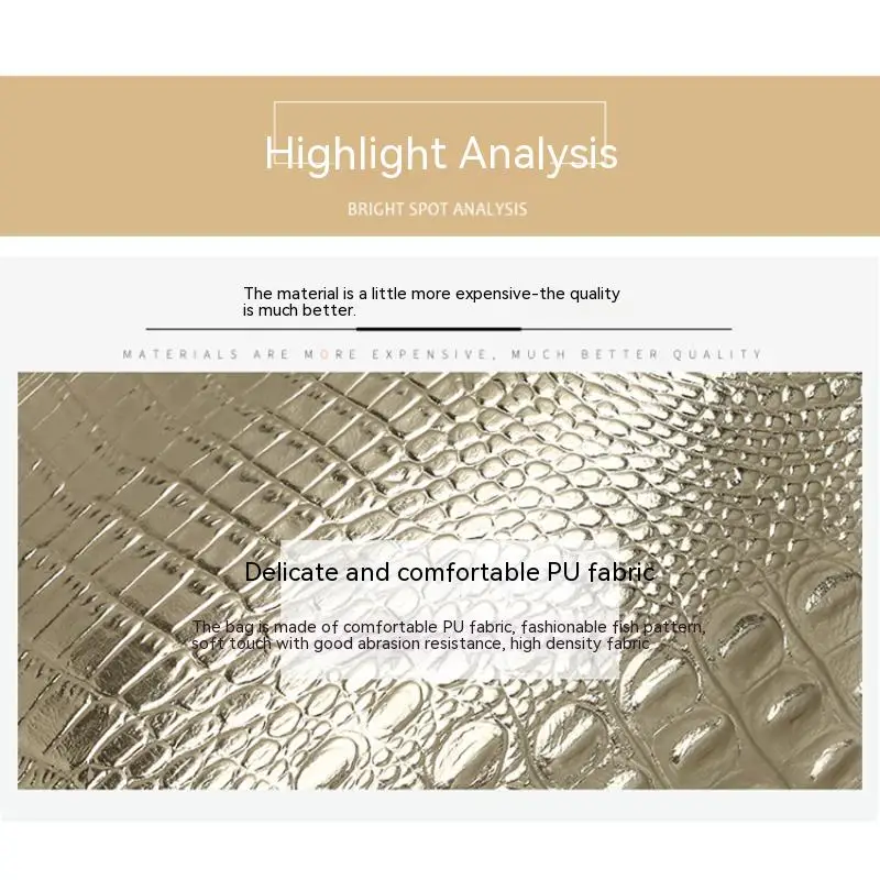 Specification:Size: Upper width 40cm/15.75in*Lower width33cm/12.99in*Height 30cm/11.81in*Thickness10cm/3.94in*Handle height 25cm/9.84inColor: Black;Gold;SilverMaterial: PuFeature:1.Using PU crocodile grain leather material, with clear surface grain, high simulation, soft texture and durability;2.Exquisite detailing and smooth lines, including zippers, metal buckles, accessories and other parts, all taking into account practicality and aesthetics;3. Trendy and fashionable style, suitable for women of all ages, especially those who pay attention to quality and class. Rich in color and high-end atmosphere, it is a daily handbag with both beauty and practicality.