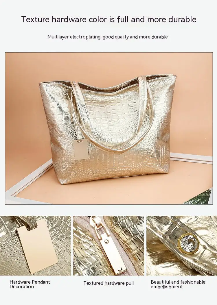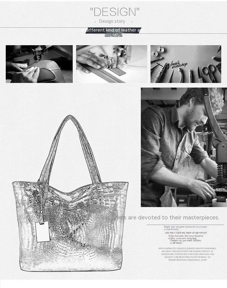 Bags LargeCapacity OneShoulder PU CrossBorder Crocodile Pattern HandBag Foreign Trade Fashion Europe And The United