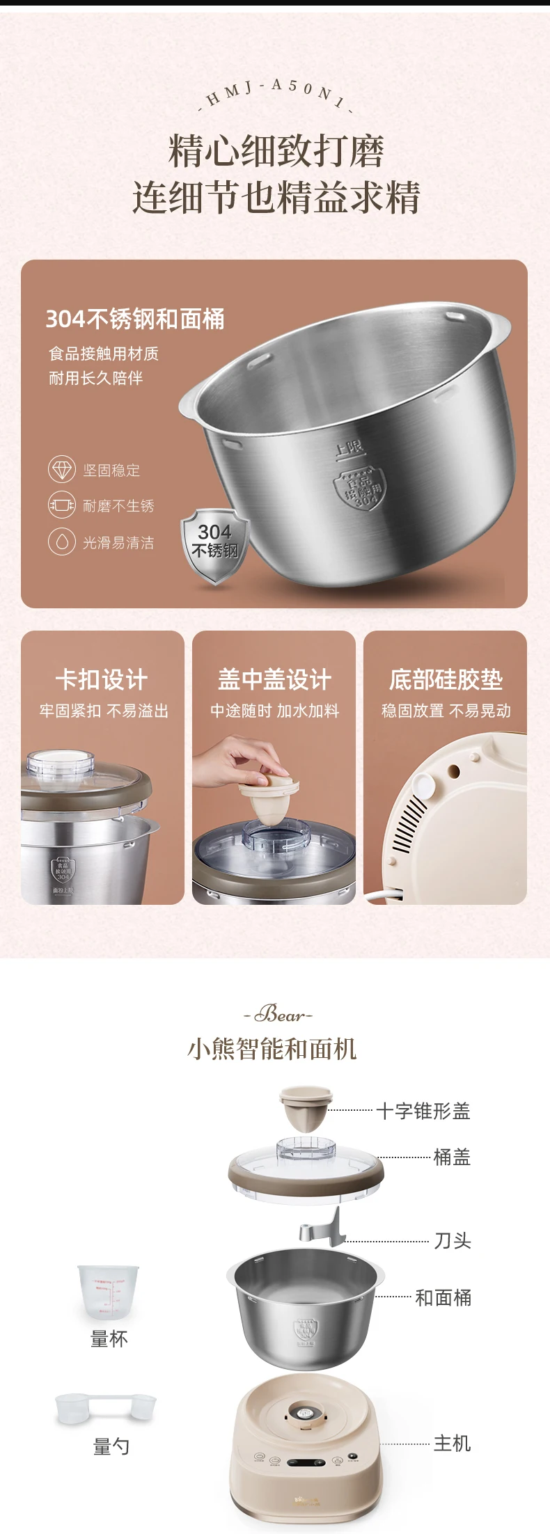 Bear Flour Mixers Electric Food Mixer Stainless Steel Chef Machine 5L Household Blender Cake Bread Electric Dough Maker 220V