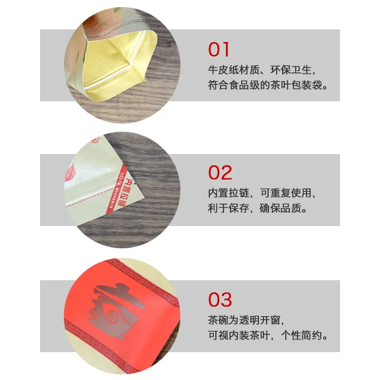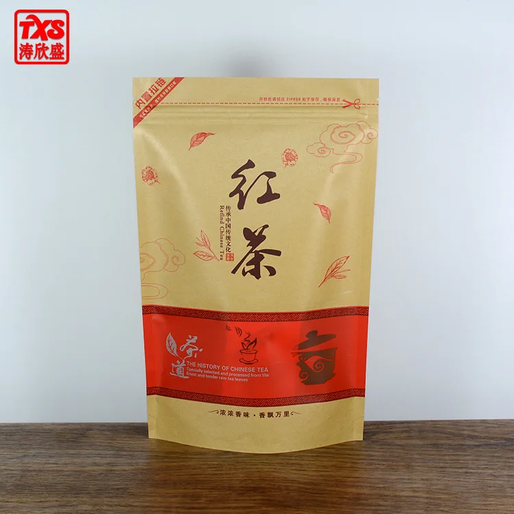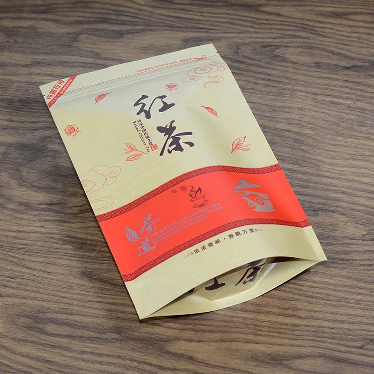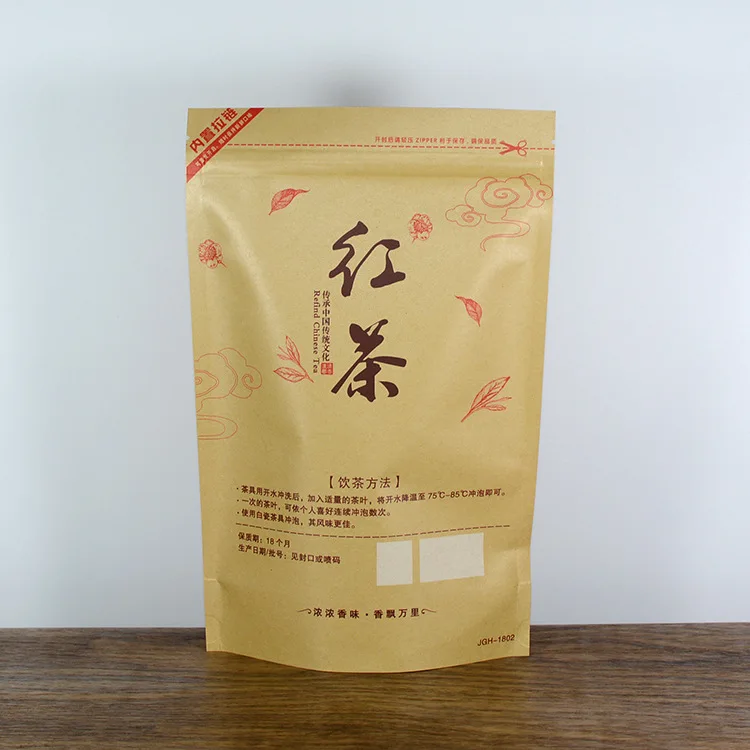 Black Tea Thick Brown Paper Zipper Bag Self-supporting Self-sealing Tea Bag Universal Tea Packaging NO Packing Bag
