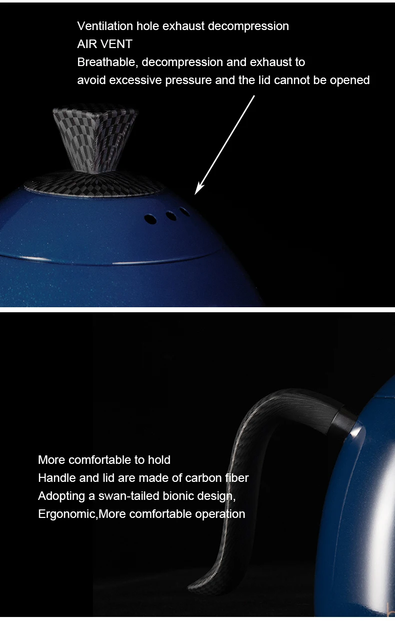 60분 동안 사용하면 주전자가 자동으로 닫힙니다. 따뜻함 유지 - 주전자를 열고 따뜻함 버튼을 눌러 한 시간 동안 온도를 유지합니다. 궁극적 인 기울기 제어 - 거위 목 파이프 노즐은 어떤 상황에서도 궁극적 인 제어와 편안한 기울기 기능을 제공합니다.
