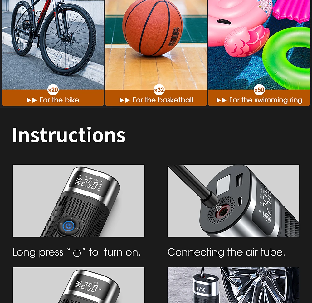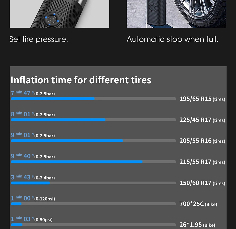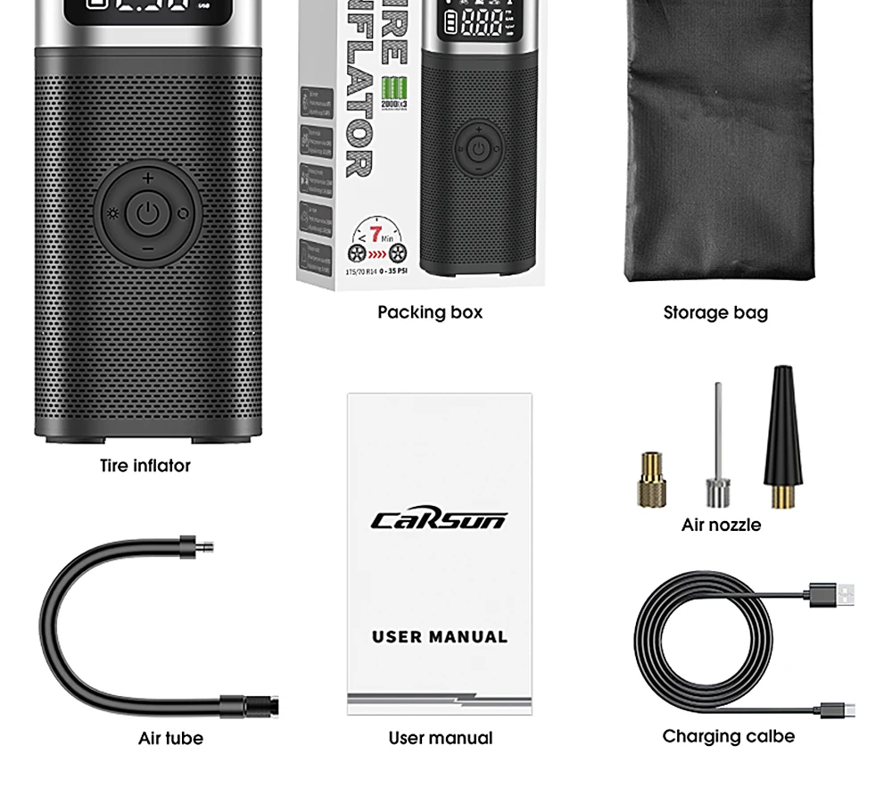 CARSUN Rechargeable Car Air Inflator Pump With LED Lamp For Car Motorcycle Bicycle Tyre Ball Wireless Mini Auto 120PSI Tire Pump