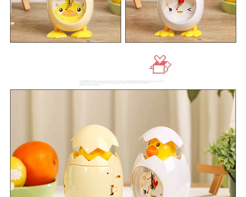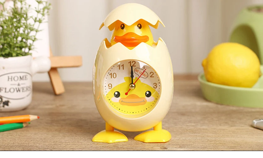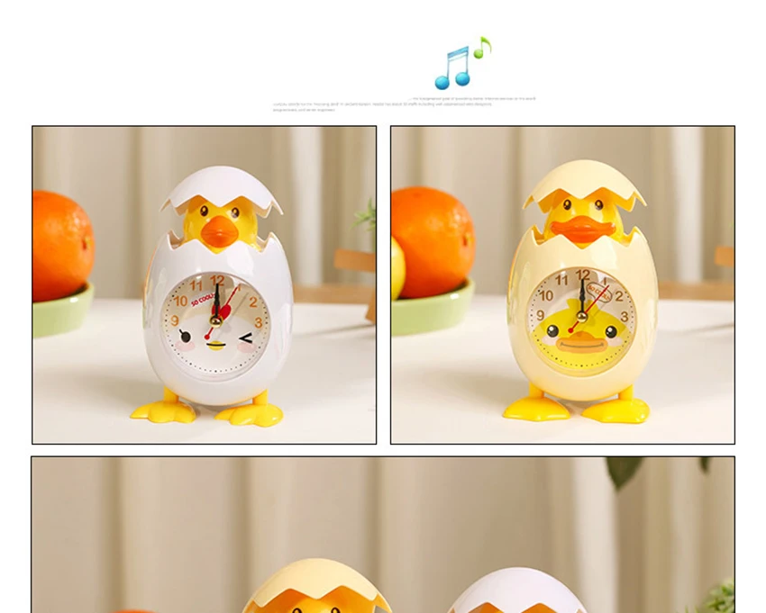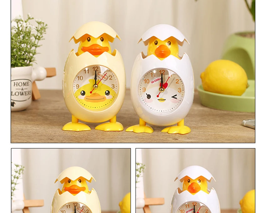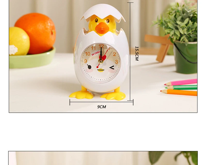 Cartoon Eggshell Chick Alarm Clock Battery Powered Table Bedside Mini Clock Ornaments for Kids Bedroom Great Gifts for Children