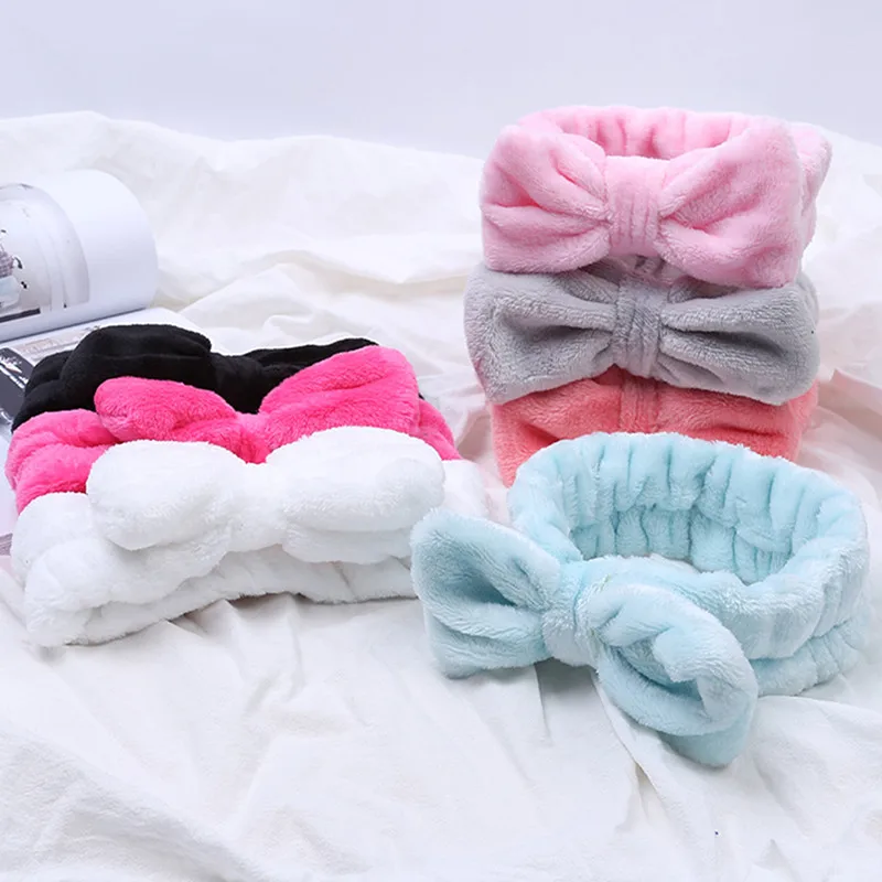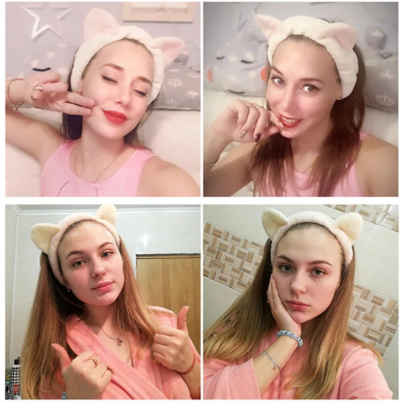 Cat Coral Fleece Head Bands for Women Cute Soft Hair Bows Headband Hairbands Wash Face Make Up Turbans Bandage Girls Accessories