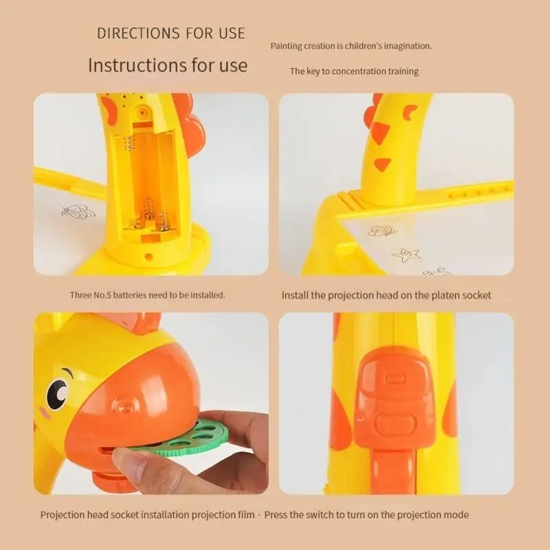 Giraffe shape - This projection drawing table has a giraffe shape. The super cute appearance attracts children's attention even more. Projection drawing board allows children to copy painting and self-expression, which helps to improve children's imagination, concentration, and satisfy their curiosity about the world.