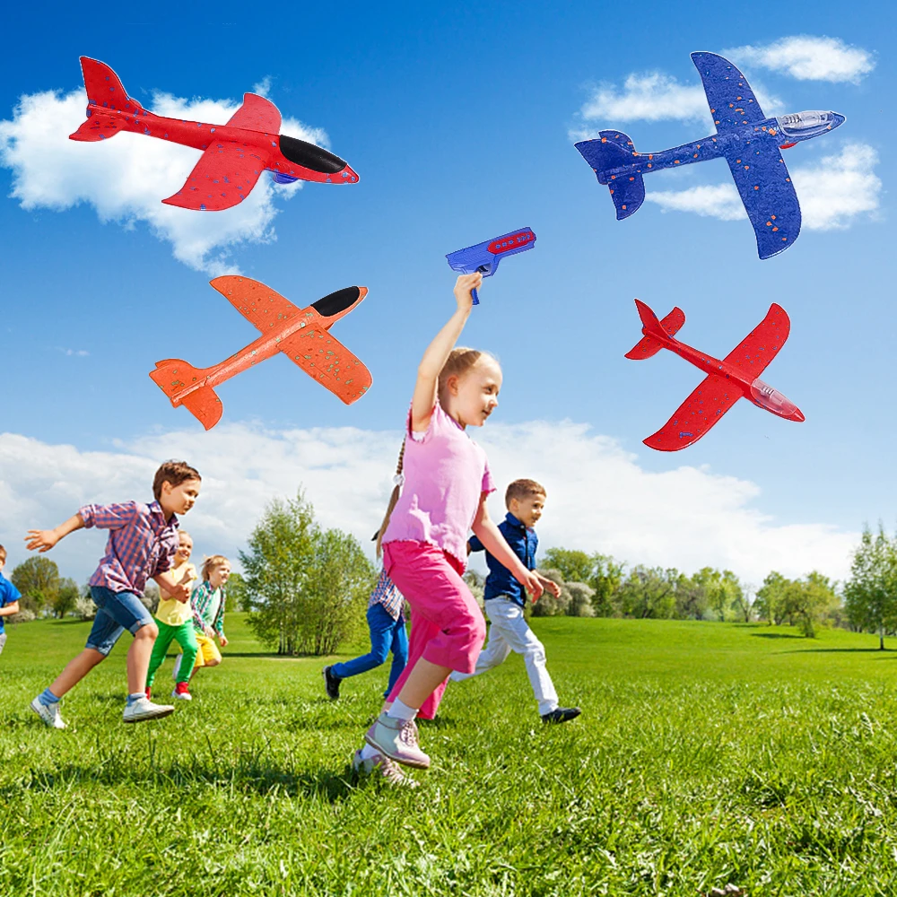 Children Foam Plane Launcher Toy 8-12M Range Airplane Gun Catapult Shooting Roundabout Toys Kids Boys Girls Outdoor Sports Game