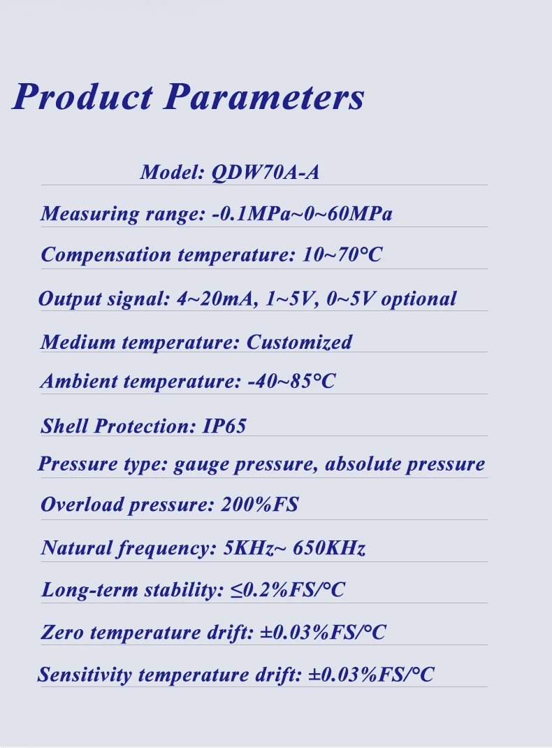1. Diffusion silicon chips imported from Germany can measure various media with high precision. Perfect for various working conditions.