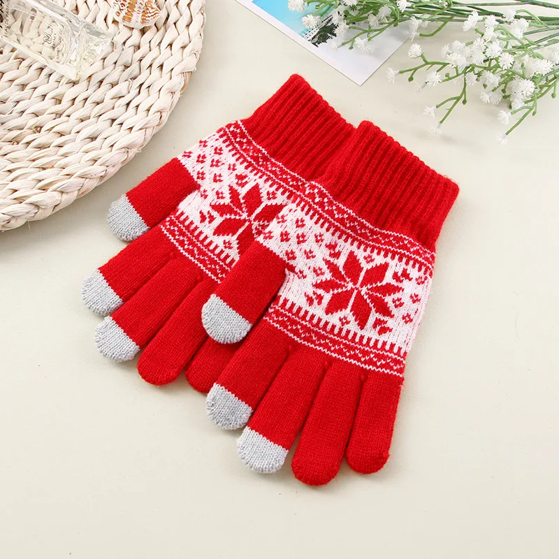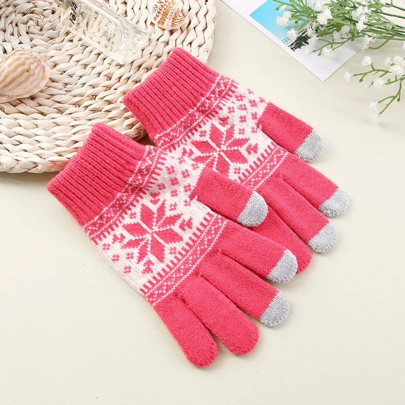 Creative Fashion Snowflake Printing Gloves Mobile Phone Touch Screen Knitted Gloves Winter Thick & Warm Adult Gloves Men Women