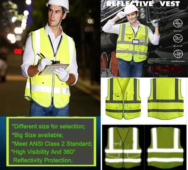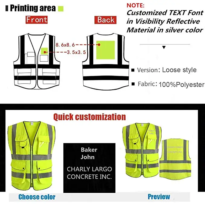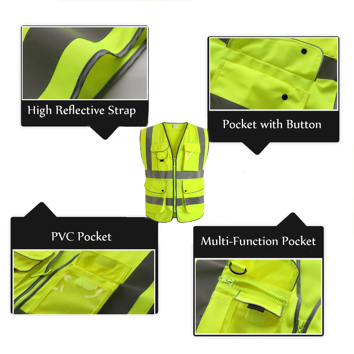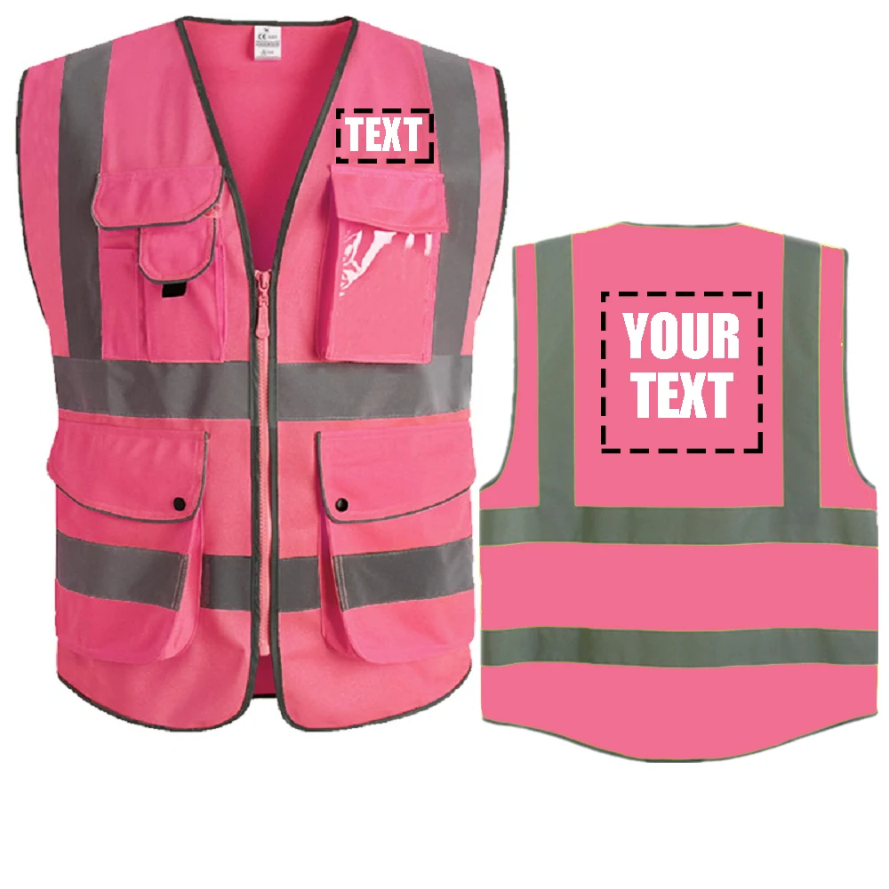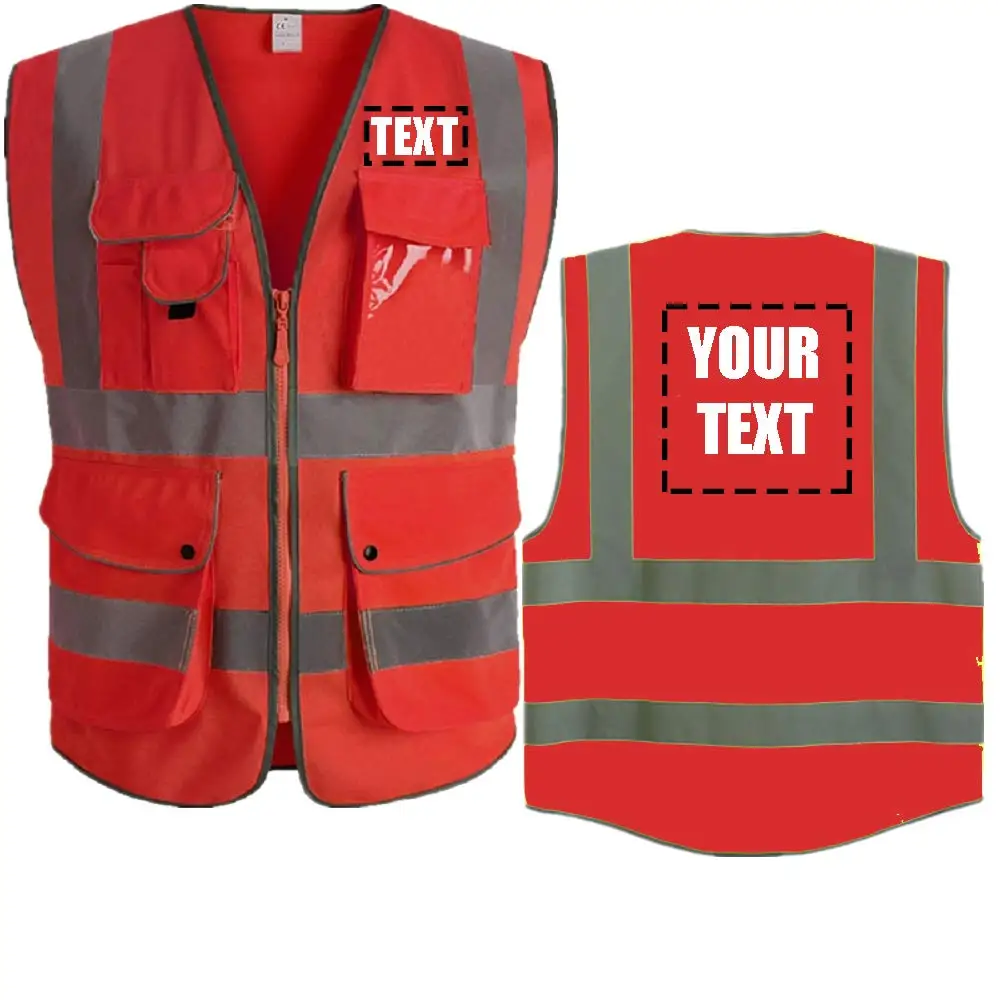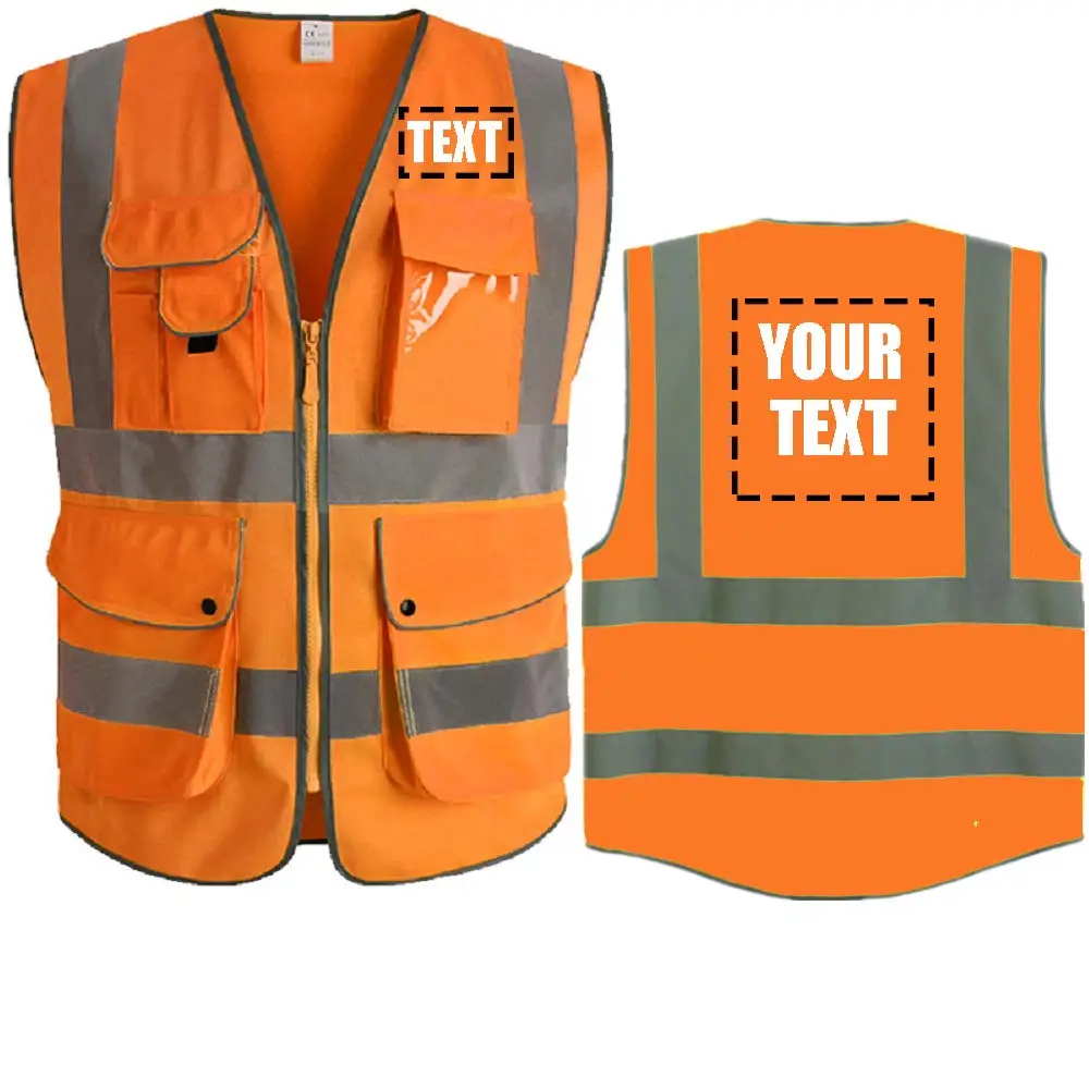 Custom Your Text Logo High Visibility Reflective Safety Vest with 9 pockets ;