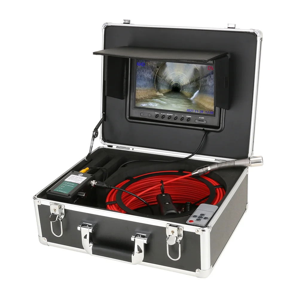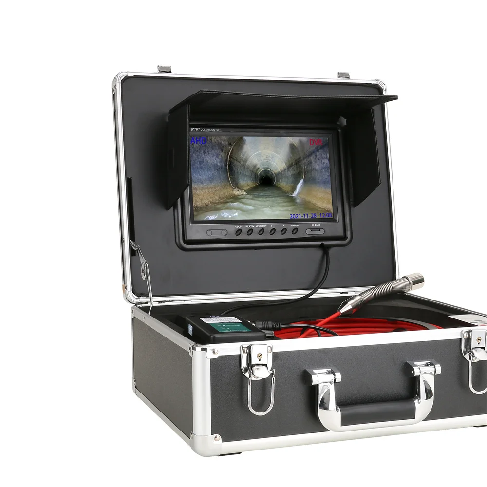 Professional Drain Pipe/Sewer Pipeline Inspection Camera is designed with a 9 inches color IPS LCD monitor with a sun-visor for outdoor inspections.The material of wire is fiberglass rod(diameter: 4.9MM),anti-corrosion/cold/tensile.