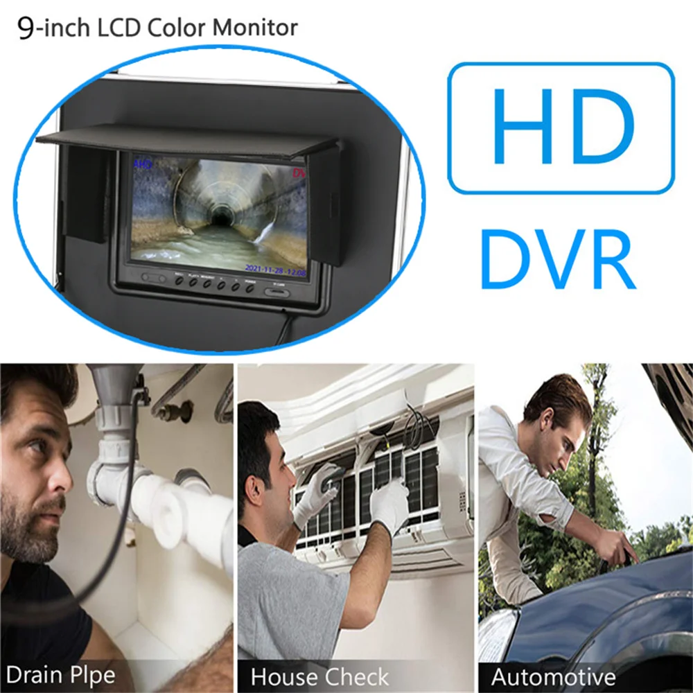 DVR 9" Monitor Sewer Pipe Inspection Video Camera ,IP68 AHD 1080P Drain Sewer Pipeline Industrial Endoscope System with 12PCS LED Lights 16GB Card