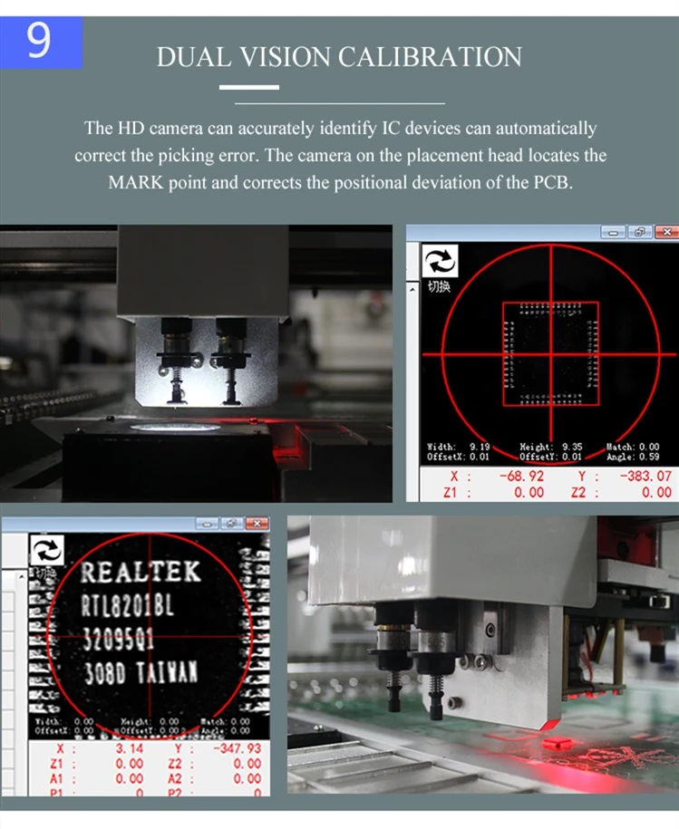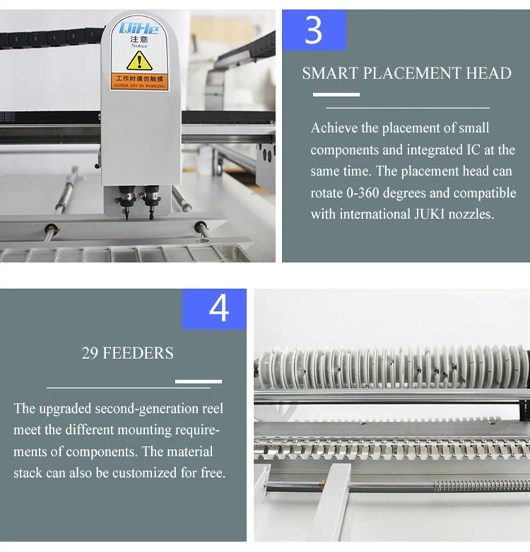 If you have any questions about the price, you can contact our customer service staff to discuss.TVM802AX with visual placement machine.(Note: This link not include computer, you can directly use your own computer with windows7 system :)) QIHE TVM802 working video: QIHE TVM802 Series Visual Mounting LED Working Video:http://www.qhsmt.com/shibinzhongxin/tvm802seriesvisualmountingledlamp.html QIHE TVM802 Placement 0603 LQFP48 Working Video:http://www.qhsmt.com/shibinzhongxin/tvm802precisionsmticvideo.html QIHE TVM802 Placement 0402 0603 0805 Working Video:http://www.qhsmt.com/shibinzhongxin/rev040206030805andtvm802visualpastedonthepackage.html QIHE TVM802 Without Vision Visual Mounting LED Working Video:http://www.qhsmt.com/shibinzhongxin/rev040206030805butvisualandtvm802pastedon.html TVM802AX Intrduction TVM802AX automatic visual pick and place machine has upgrade some core parts such as upper and bottom visual system, patented roll feeder, built-in industrial computer, high voltage motor drive system,Flexible S-type acceleration. Has received the customer consistent high praise and the praise. TVM802AX Feature 1. intelligent double vision 2. 29pcs standard reel feeders 3. StepperClosed-loop motor 4. Built-in industrial computer The TVM802 software was developed by ourselves. The software is available in English. And our software will be updated, as soon as there is an update, the salesman will send new software to your mailbox. The TVM802 machine has one year warranty, lifetime maintenance. We have a professional after-sales team. As long as there is a problem with the machine within one year after purchase, we will repair it for free. If there is a need to replace the accessories, we will send them to your hands for free.(Generally we use TNT/DHL. 3-5 business days to your hands) TVM802A-X Packing List:1. Pick And Place Machine TVM802A-X: 1 Set (Exclude monitor, Mouse and keyboard)2. 4 Types Of Nozzle: Totally 4pcs(Version: No.1-1pc,No.2-1pc,No.3-1pc,No.4-1pc)3. Power Cord:1pc (110v/220v)4. Magnetic Needle:1pc5. 2.0mm Hex Screwdriver: 1 Set6. 4G USB flash drive: 1pc7. User Manual:1pc8. Test PCB: 1pcModel | TVM802A-X |