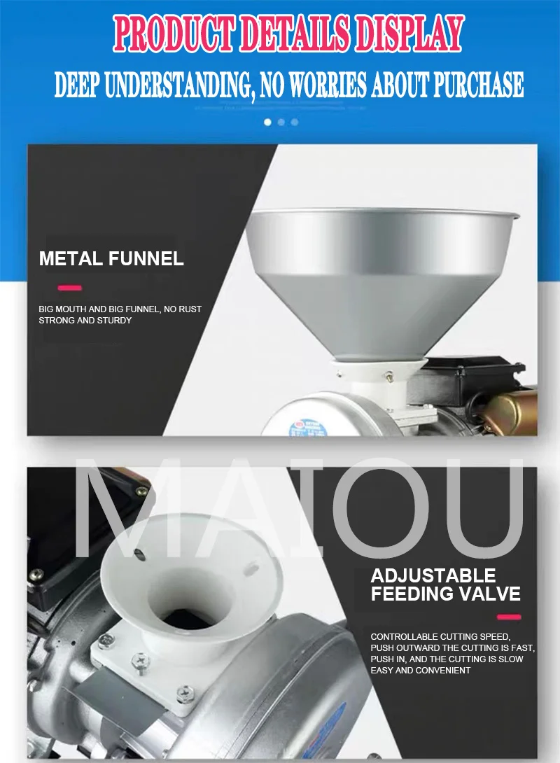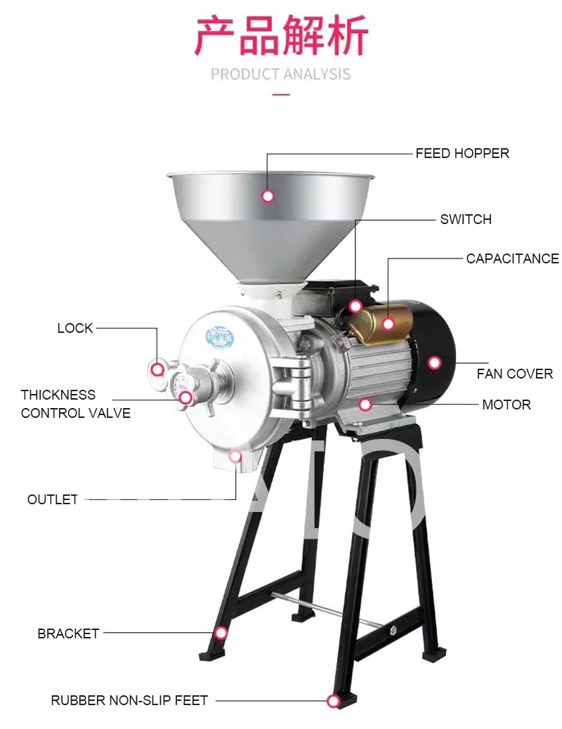 This machine is suitable for grinding tofu, starch, rice flour, corn, and used in other food industries. It can grind wheat, rice, corn, sorghum, soybeans and other crops into dry powder. It is especially suitable for grinding soaked soybeans and rice into pulp, which can be made into soy milk, rice cakes and other foods. At the same time, it can be used to crush feed.