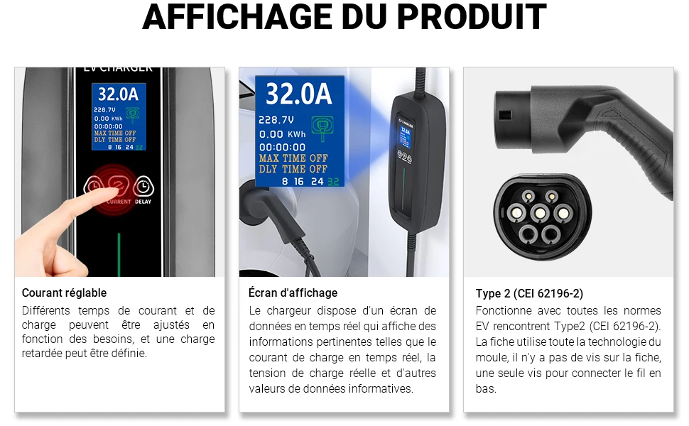Compatible with all electric vehicles with type 2 (IEC 62196-2) , with a 99% compatibility.
