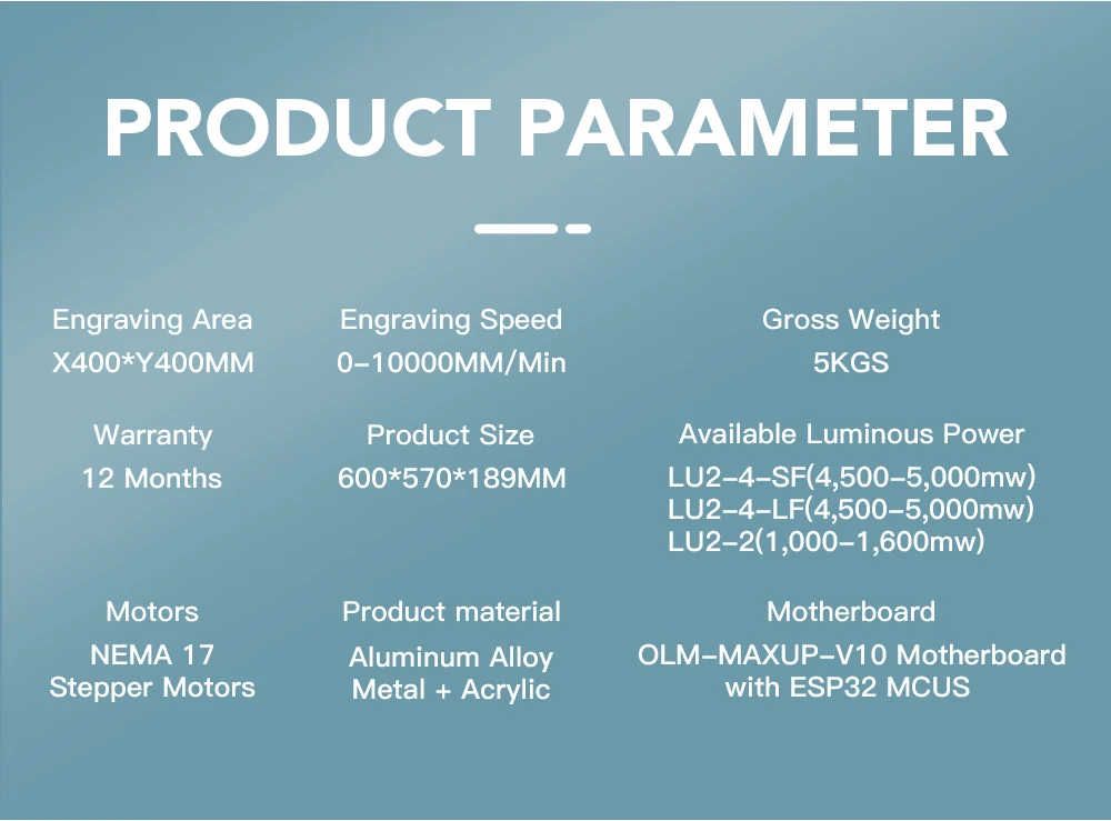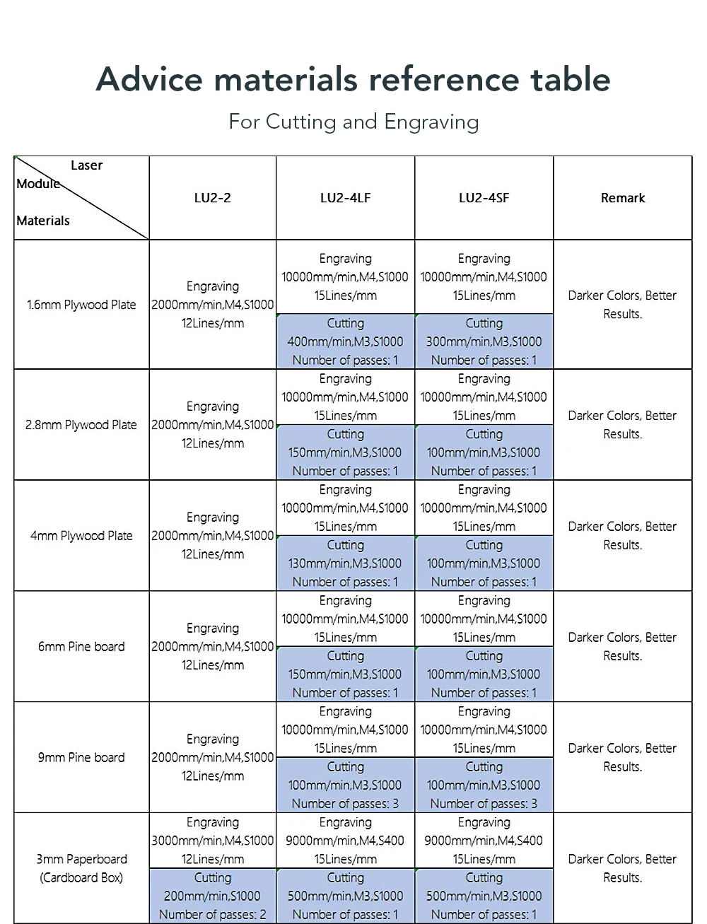 | OLM2 PRO S2 Engrave Speed | 0-5000mm/min |