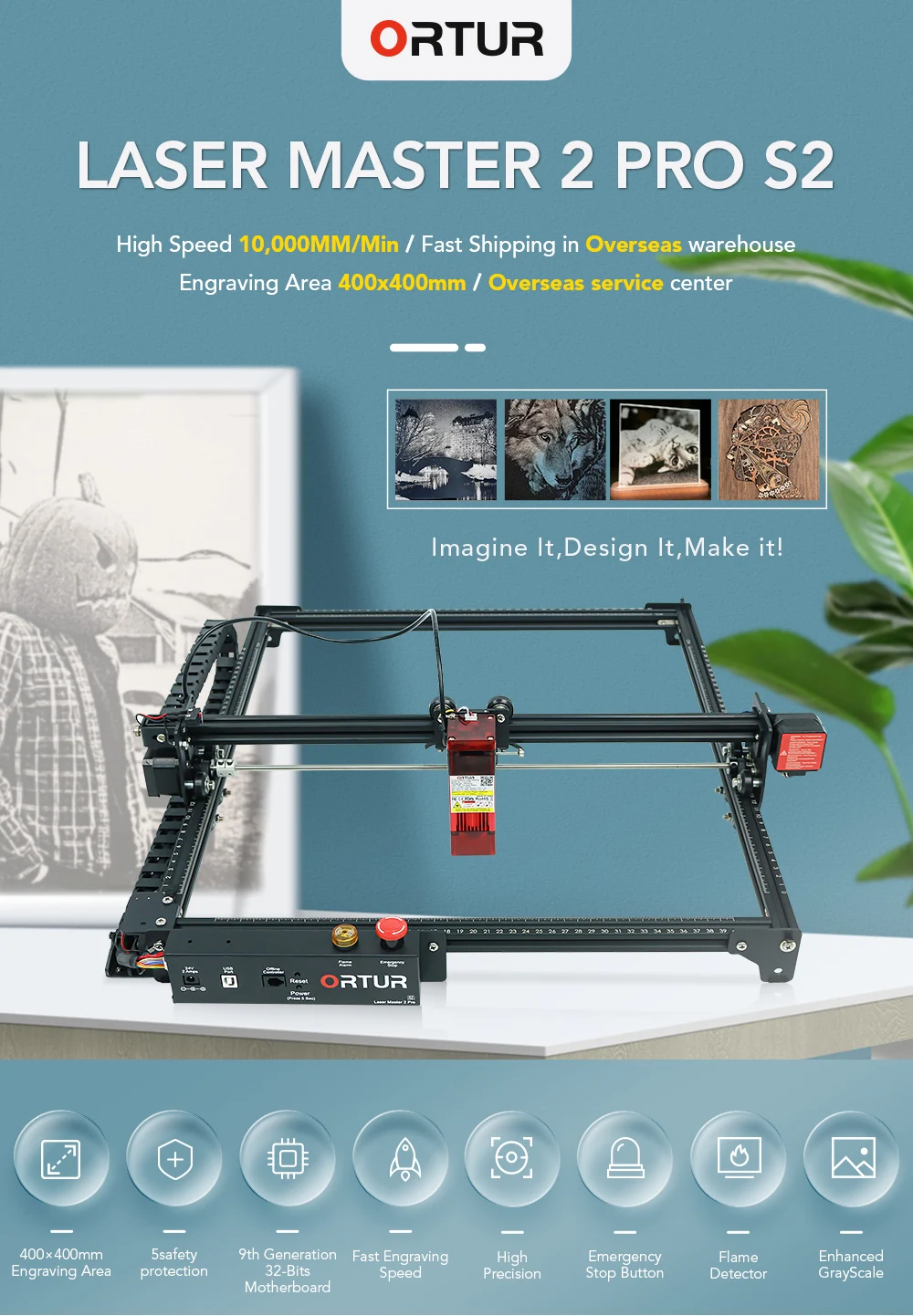 Fast Delivery ORTUR Laser Master 2 Laser Engraving Cutting Machine 32-Bit Motherboard 20W Fixed Focus Laser Printer CNC Router