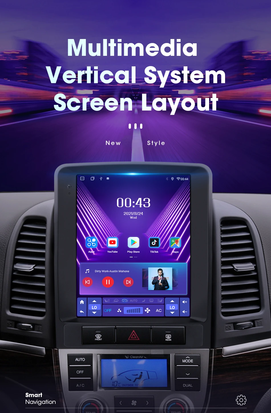 For Hyundai Santa Fe 2006-2012 Android 11 Car Radio Multimedia Video 2Din Navigation Carplay Head Unit Player Stereo speakers