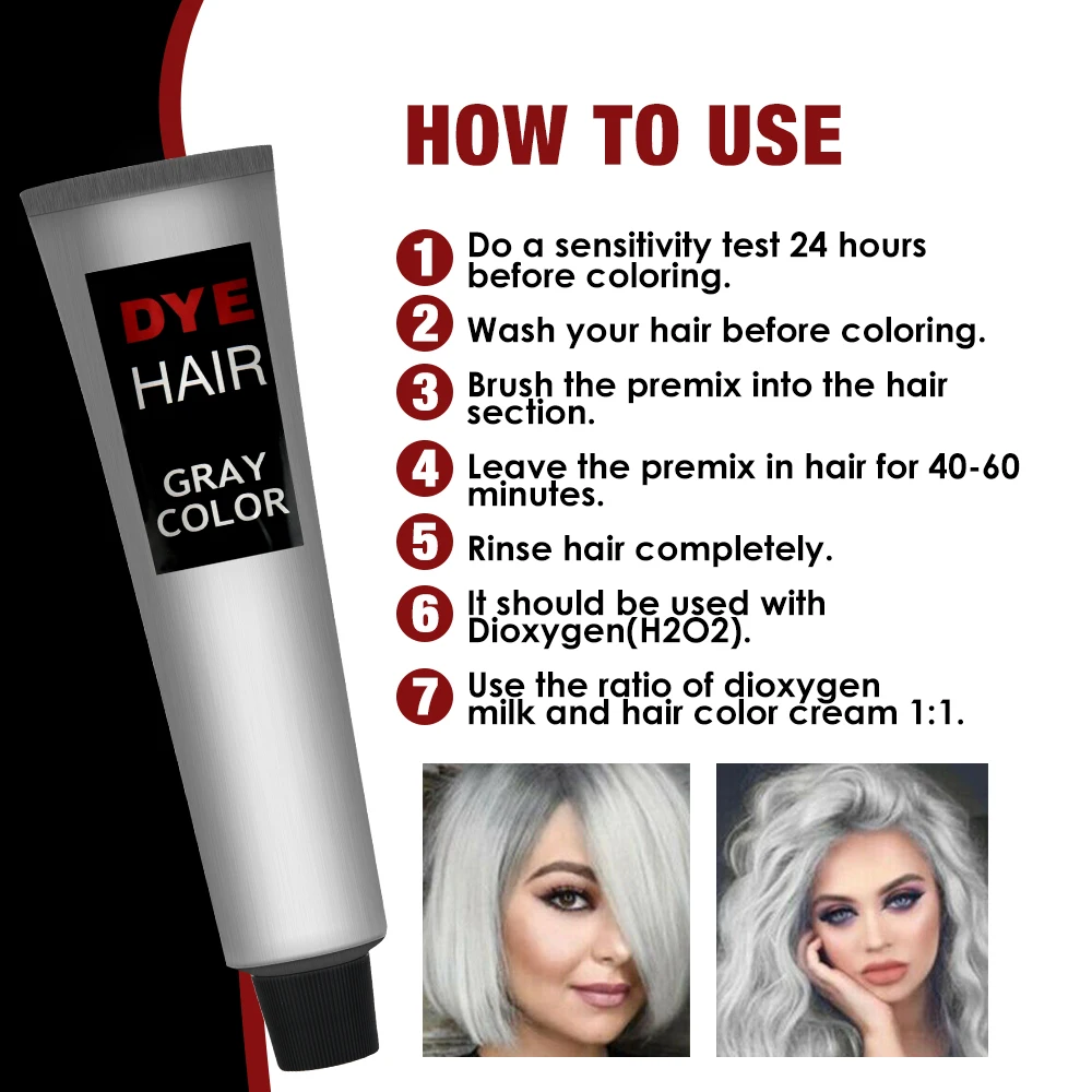 Grey Hair Dye Permanent Natural Plant Extract Cover White Hair Fashion Grandma Gray Color Dying Cream 100ml