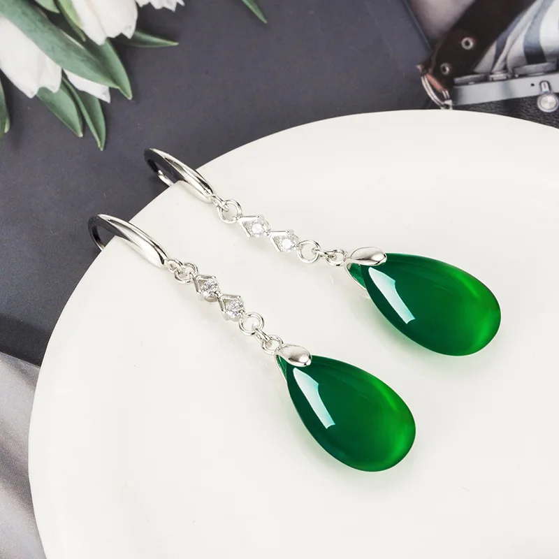 Green Emerald Jewelry Peridot  925 Earrings for Women Silver 925 Jewelry Korean Bizuteria Aros Mujer Oreja Drop Orecchini