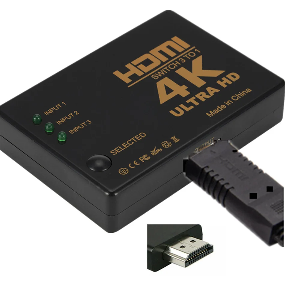 Description--The MINI HDMI switcher not only has the key-press-switching function, but also has the intelligent function.--The MINI HDMI switcher routes high definition video and digital audio from any one of the several sources to display units. --All input accommodate the connections of the high definition video sources simultaneously, --Compatible well for HD-DVD. SKY-STB, PS3, Xbox360 etc. The output sends the high definition audio/video signals to a high definition display Features--This mini HDMI switcher has many features that enable it to perform in a superior manner.--Amang those features you will find:--Support full 1080p ultra HD--Multifunctional on switching: intelligent or mechanical--Supports with HDML1.4b--High performance up to 3.4g--Maintain high resolution video-beautiful, sharp HDTV resolutions up to 1080p, 2k, 1440p graphics and computer resolutions up to 4k Package include1 x 3 port 4K HDMI Switch