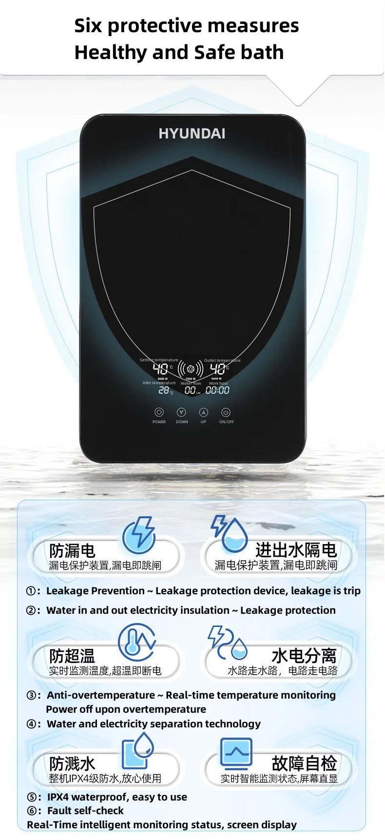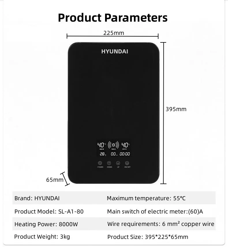 HYUNDAI Intelligent electric water heater ~ Instant heating ~ Full English display screen