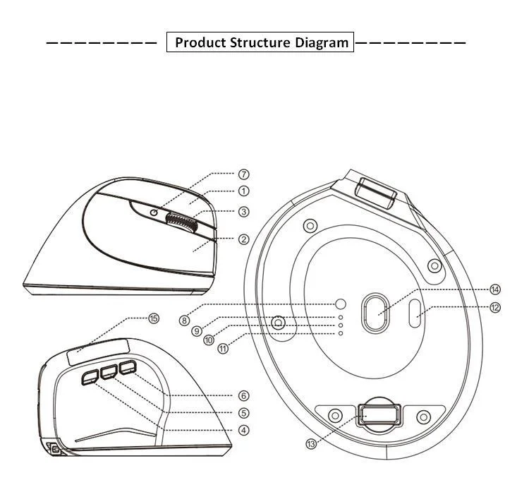 ⑦ DPIkey⑧Bluetooth key⑨Charging indicator
