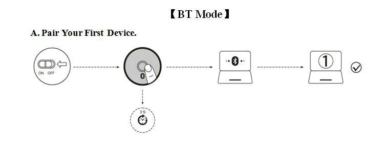 Short press the Bluetooth key to2Cyclic switching between paired devices (via Bluetooth connection1Equipment, through2.4GHzReceiver connection1Equipment).