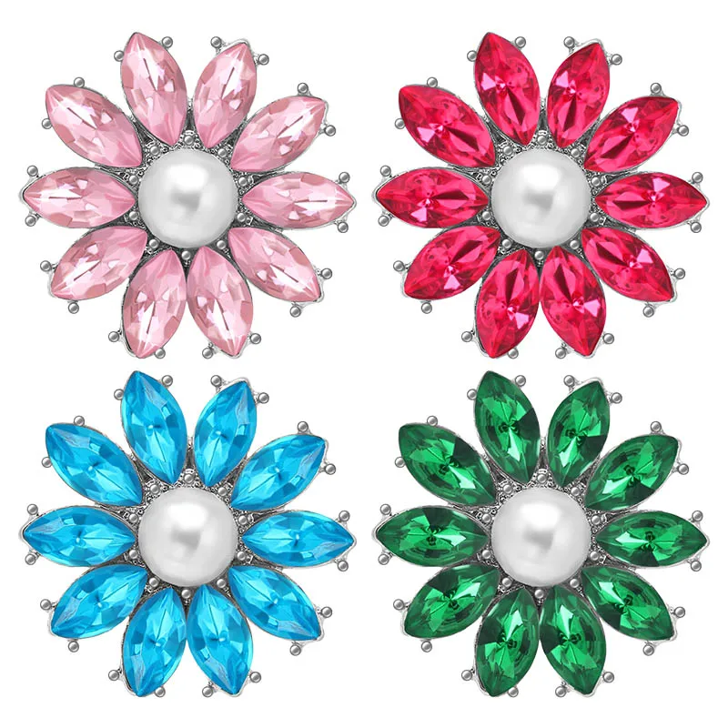 KZ3632 New Rhinestone Colorful Flower style 18MM snap buttons fit DIY 18MM snap bracelet snap jewelry Gift