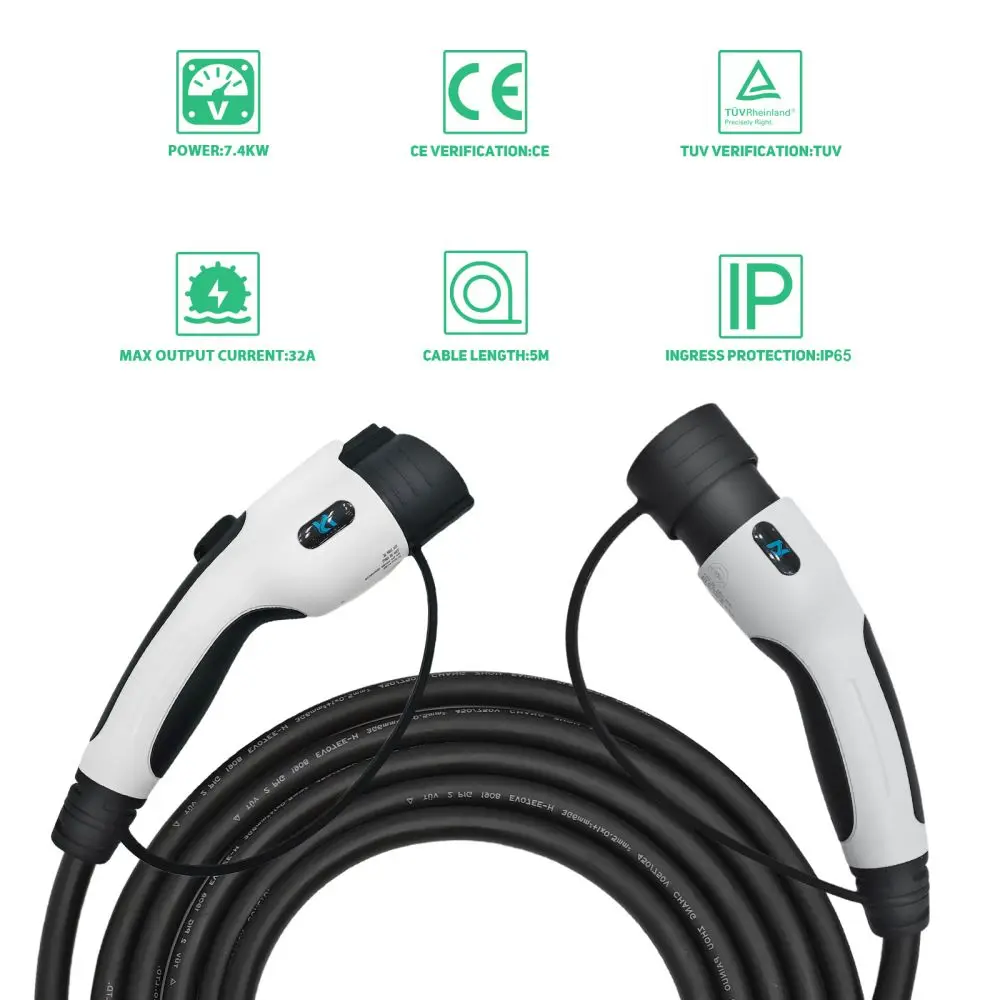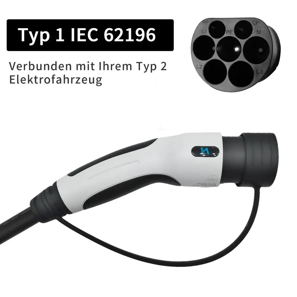 Type 1 to Type 2 Electric Vehicle Charging Cables: