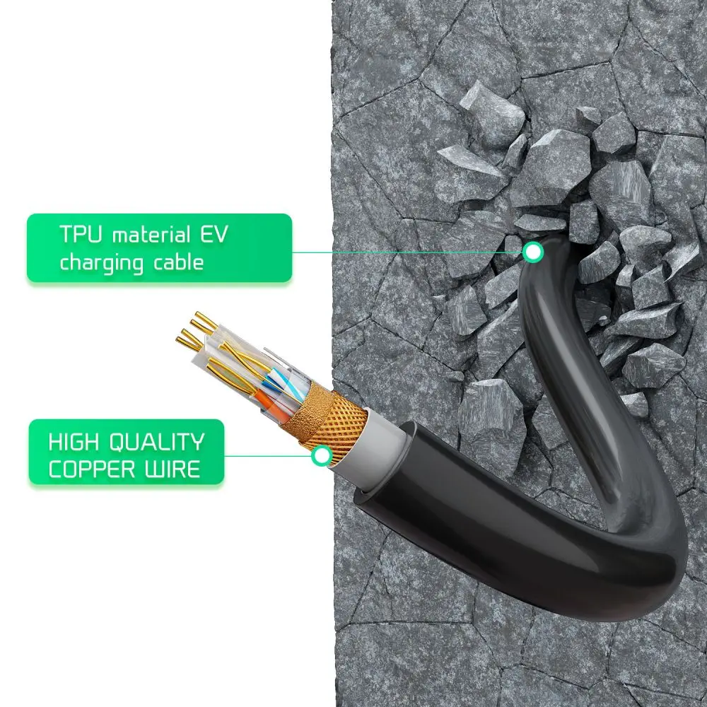 [High safety] :High quality - high-strength ABS material with better quality and longer service life; IP65 waterproof is safer during charging. The cable is made of high-quality pure copper, with good conductivity and faster transmission speed. Internal cables are clean, avoiding potential safety hazards caused by cable interference. Our charging cables have protective measures such as overcurrent protection, overvoltage protection, undervoltage protection, leakage protection, overheating protection, and IP65 waterproof, which can safely charge your car and avoid fire.